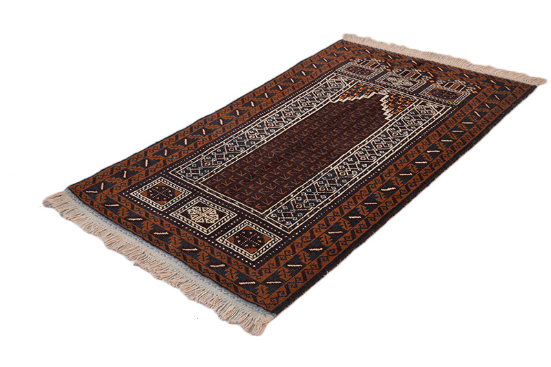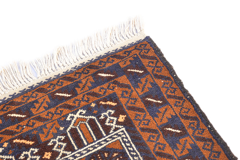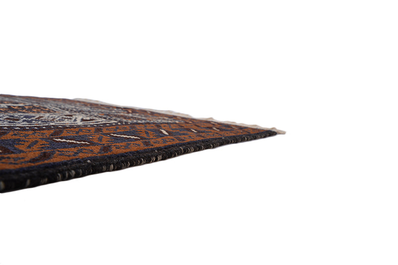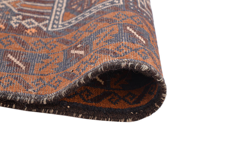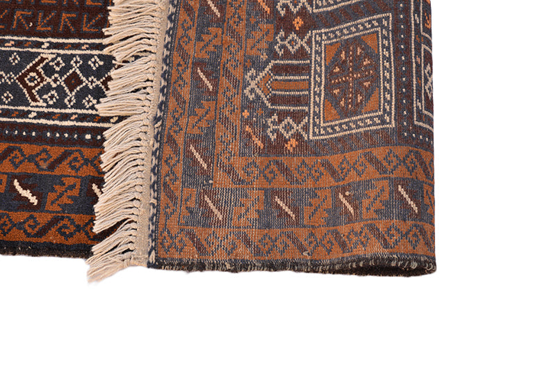 Bewitching beauty, one-of-a-kind craftsmanship and those lovely strokes forming a beautiful pattern in the middle will leave you in the state of trance! This Baluchi rug gives a big turn-on of traditional style into your home with its high-quality artisan weaving techniques and repetitive geometric designs. This rug will become your functional piece with its brilliant tone of brown, blue, beige and the typical tribal pattern that it is built on! It comes highlighted with symmetrical patterns forming a tall tower kind of shaped motifs. They are traditionally designed with an exclusive double pile, giving you an extremely lush feel when you stroll around. Simply place it on your sitting area to add glamour to it or under the bench of the piano, or in the middle of two chairs for a dramatic look!