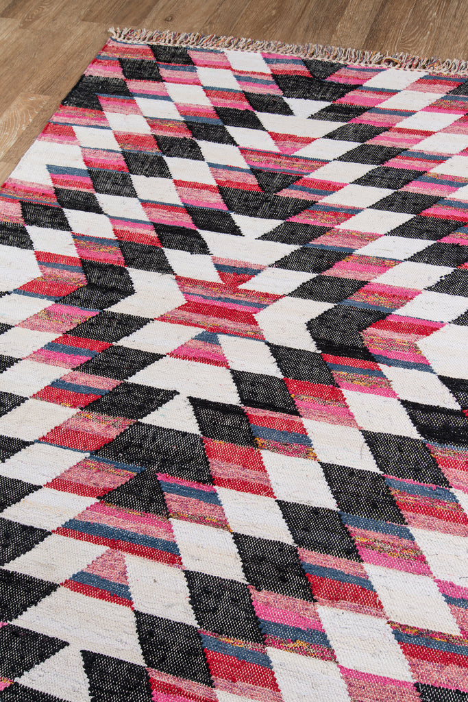 The laid-back style of this decorative area rug is rich with west coast vibes. The graphic designs take a tip from tribal motifs, using repeating geometric patterns to fill the colorful field of each accent rug with windowpanes, arabesques and bold concentric diamonds. Crafted with care using traditional hand-woven techniques, soft cotton fibers give the floorcovering a casual feel. Please note, that due to the unique dying process in making each rug, the color may differ from the image shown.