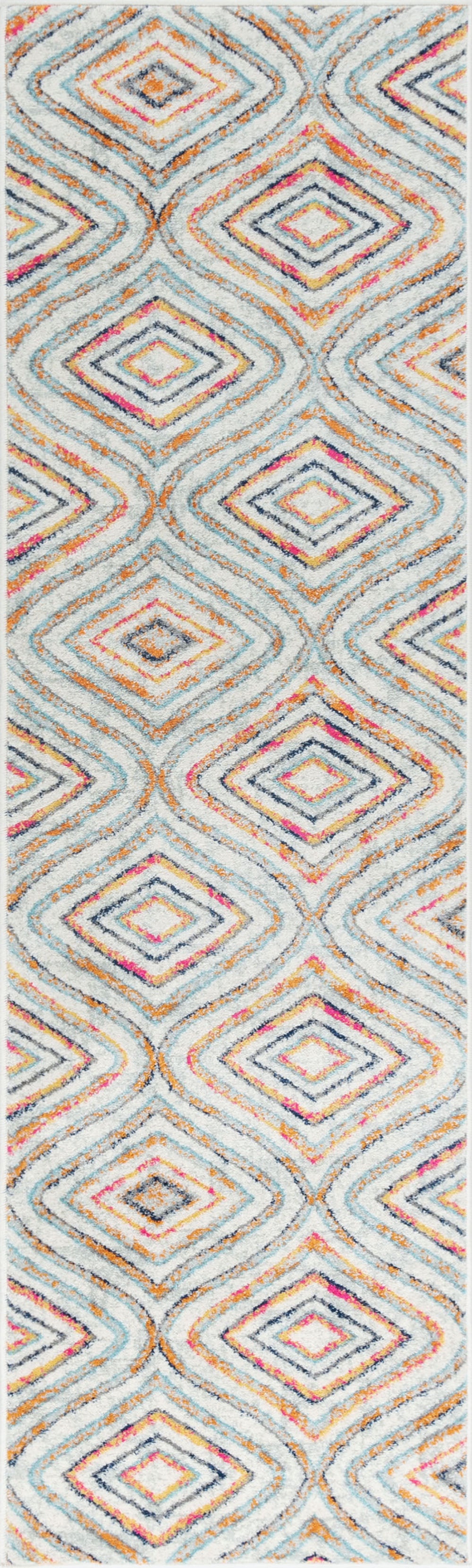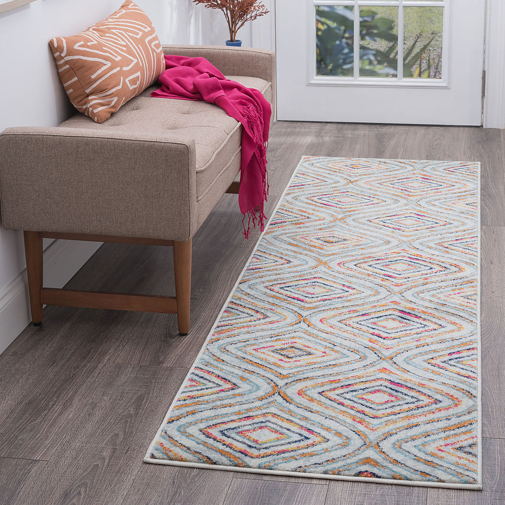 This vivacious geometric ogee rug will add a chromatic touch to modern decor or bring a sense of drama to conservative traditional. Undulating diamonds form a distinct pattern.