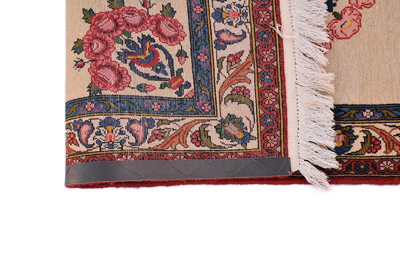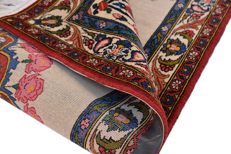 Imparting a kaleidoscopic effect with an outburst of black, yellow and light green, this Bakhtiari rug continues to rule the show with its typical geometric and floral designs and a rich medallion at its center! It has a classic panel of design that is carefully enhanced with wool and silk material! The blue, red and yellow colors add effect to the traditional Khesti pattern employed in this rug. Making this a standalone accent piece are those decorated fields with web kind of designs along with the floral embellishments that give it a bold style statement into your decor. The durable make with bright luminous colors impart harmony into your insides, which make it a truly inspiring artistry. For those with love for tribal prints, this Bakhtiari rug is the best-fitting one.