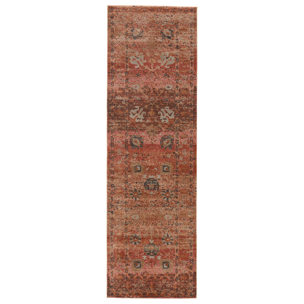 Inspired by the vintage perfection of sun-bathed Turkish designs, the Myriad collection is warm and inviting with faded yet moody hues. The Caruso rug boasts a perfectly distressed pattern in rich tones of terracotta, pink, taupe, and tan with ivory fringe trim for added texture and antique allure. This power-loomed rug features a plush and durable blend of polyester and polypropylene, lending the ideal accent to high-traffic spaces.Care Instructions