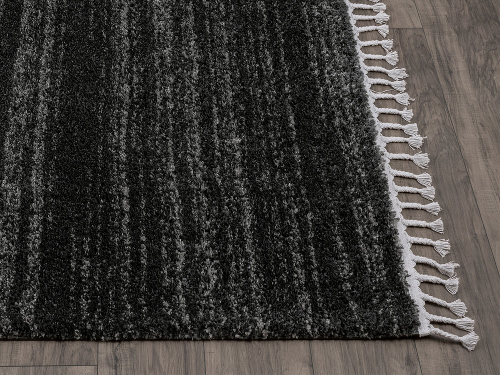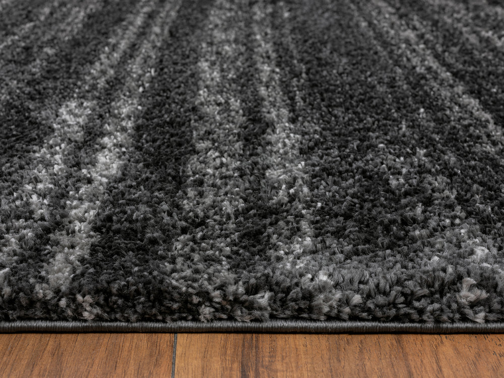This black shag area rug blends retro with modern style. Gorgeously modern and contemporary, this black design features grey lines running parallel along its length. Though geometric and balanced, it also gives the impression of a slight shimmer, adding dimension and texture to this shag rug. With brilliant color comes top-tier comfort, making this a retro and modern classic you’ll appreciate for years to come. This is a versatile design that suits any interior design style without compromising on elegance or comfort. For an easy-care style that’s built to last, you can’t go wrong with this black shag area rug.