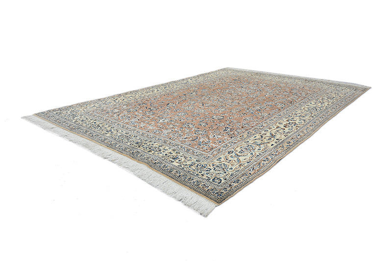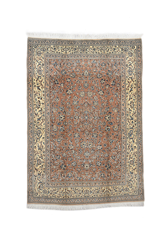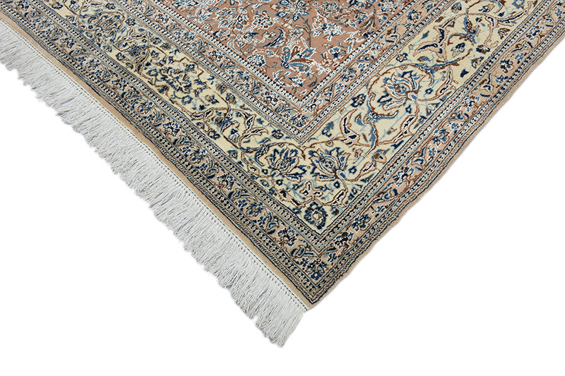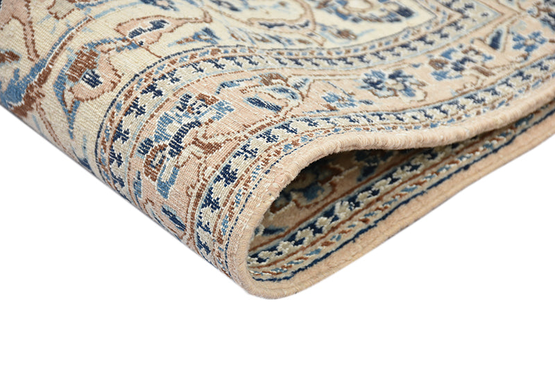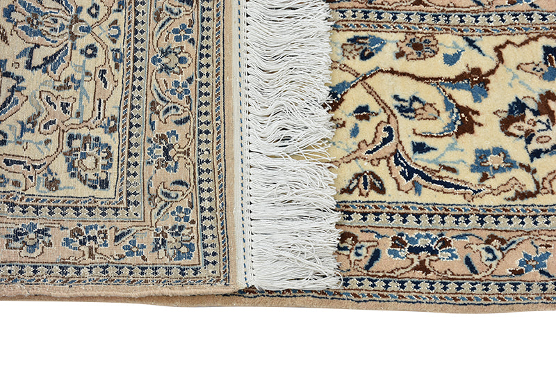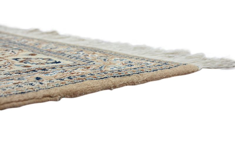 Do not stop when it comes to decorating your room with a touch of tribular grace using this vintage themed Nain Persian rug. Created using an animalistic theme, it adds charm and native feel to the viewer. Being a model of artistic brilliance and intellect it provides an assertive vibe that extends throughout its expanse. Inspired by the designs of Nain that includes a central large motif, this rug is just the right example for geometric and symmetric excellence. Red and Blue naturalistic figure designs along with a contradictory beige background are the typical colour scheme. Made of pure quality wool and silk and measuring 5' 4" x 7' 10" this rug is sure to give any room a fascinating naturalistic feel!