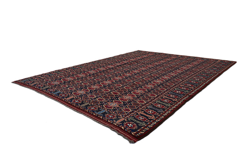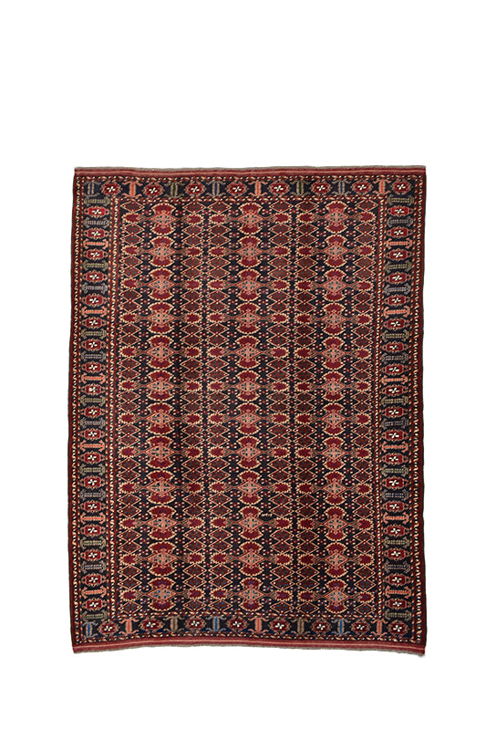 Boldly designed motifs and medallions weaved using natural wool is our Turkman styled Afghani rug's key highlight. This comes dyed using colours like red, blue and beige that blends well with accurately designed medallions and borders. Handwoven using 100% pure quality wool, this rug gets a naturalistic feel, not just for a few months but for years to come. It is inspired by the artisan skills of Afghani craftsmen, adding a touch of royalty to your living space. Its modest design makes it suit any decor, be it modern or vintage style. This rug is an excellent value for your money and best addition to your expanse.