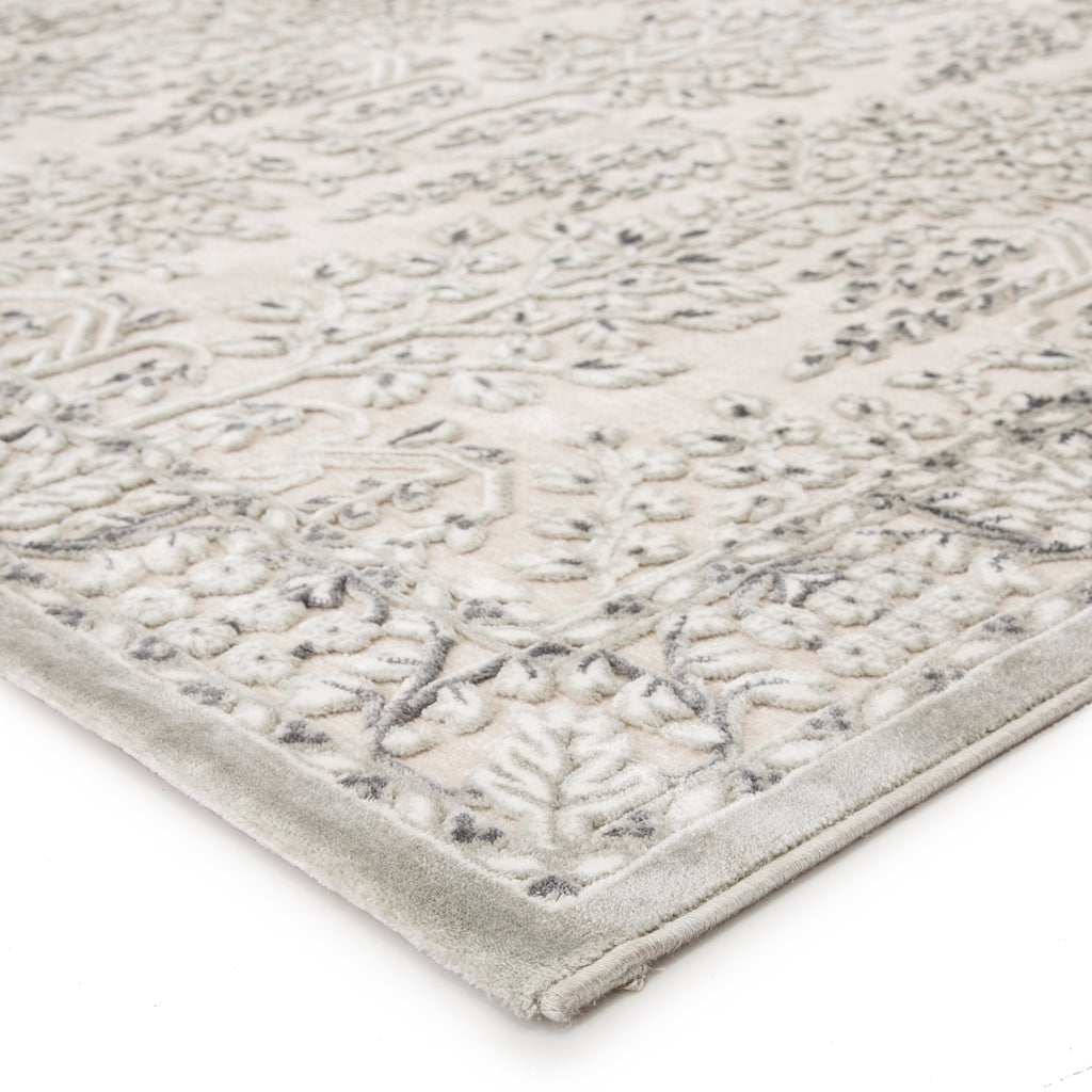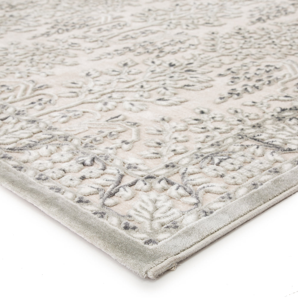 The Fables collection is a curated assortment of contemporary and transitional styles with an invitingly soft touch, rich high-low texture, and a luxurious sheen. The Brighton area rug lends classic elegance to any space with an Oriental-inspired floral design. Ornate and feminine, this acrylic, rayon, and polyester rug offers a beautiful luster in a soft glam gray and off-white colorway.