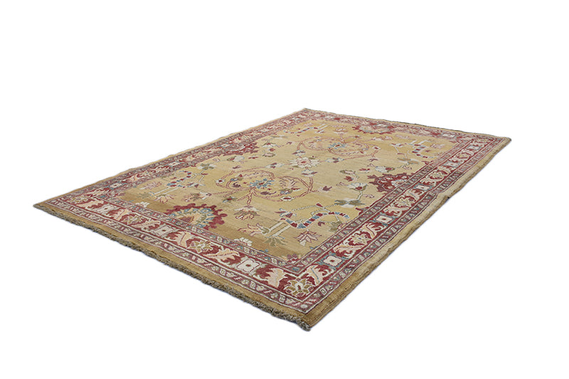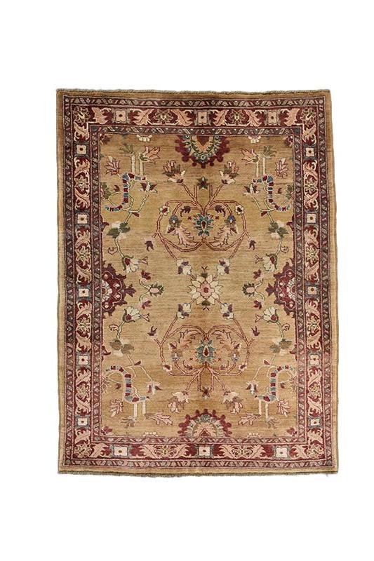 The intricate styling that has gone into the making of this typical Chubi Rug needs no explanation! Sporting a design that is mainly composed of floral motifs with perfect balance on either side, this rug in contrasting shade readies your indoors with an antique, time-worn look. A yet another surprise - this work-of-art does not have any artificial dyes. Killing is its looks when spread open on your wooden floor which dramatizes the whole set up. The earthy color tone, subtle creativity, and perfect texture make it an art form by itself. Measuring 4' 0" width and 5' 6" length, this ultimate rug is suitable for high traffic areas to fill your home with flair and style that you have been waiting for.