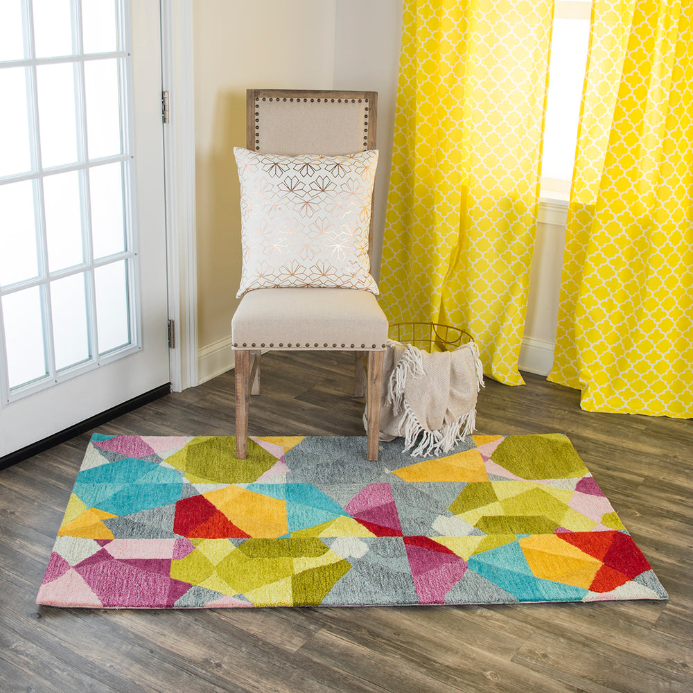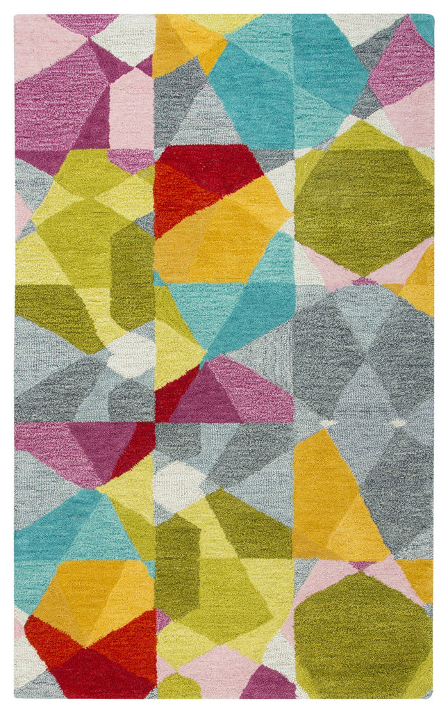 Add instant color and interest to your room with this brite, fun, Geometric paatern. Hand tufted by the skilled weavers in India, each piece is created with 100% Wool and great attention to detail.