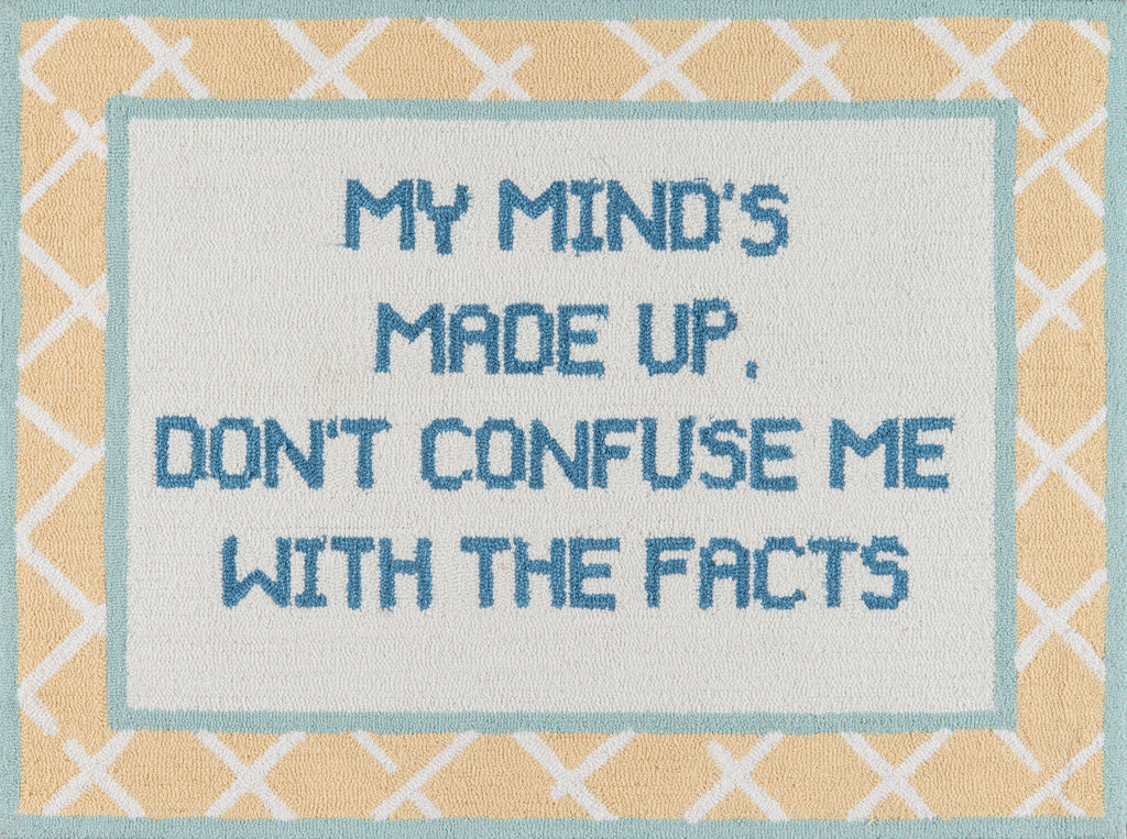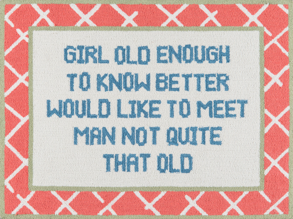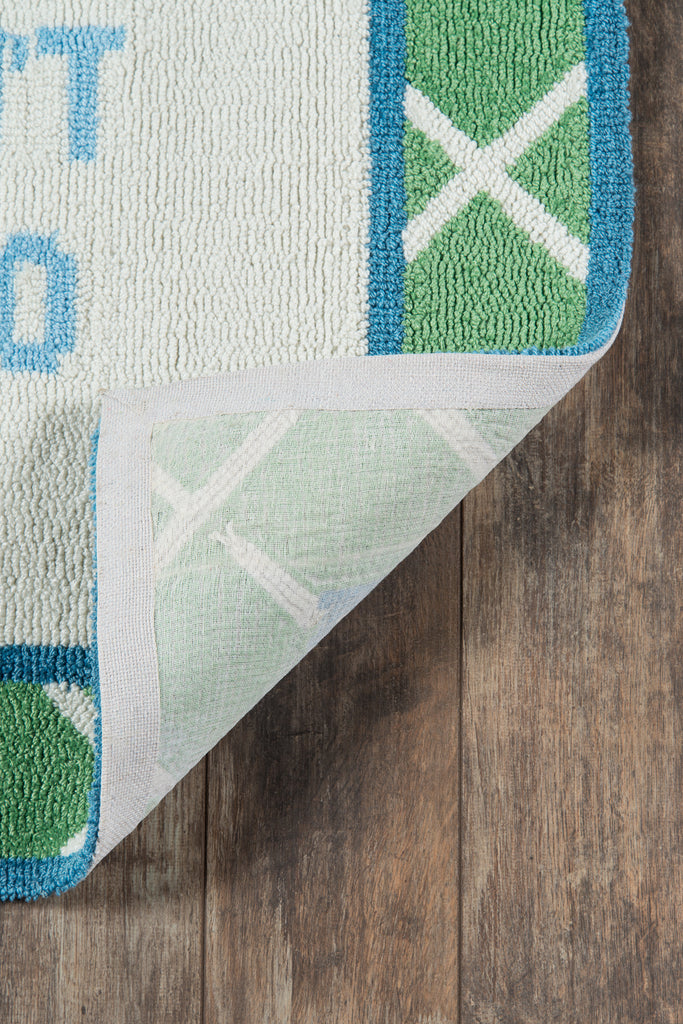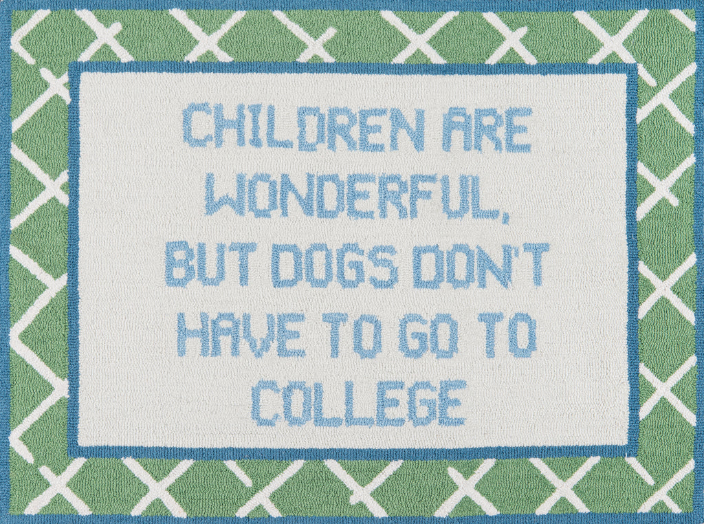 Hand-hooked fabrication and bold typography create this traditional area rug that’s a decorative departure from your grandma’s needlepoint pattern. A green-and-white crosshatch border surrounds the sky blue block text that reads, “Children are wonderful, but dogs don’t have to go to college.” The rectangular floorcovering acts as a welcome mat or accent rug with polyester fibers that hold up beautifully in heavy traffic areas. Family heirlooms find a sense of humor in this Madcap Cottage by Momeni collection that combines quirky sensibilities with a wink to classic handicrafts. Bring the adventure home.