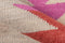 Satisfy your wanderlust with the tribal motifs of this transitional area rug. A graphic spectrum of triangulated shapes creates a geometric landscape of directional movement in shades that range from neutral beige and brown to buttery yellow, bold orange, red and pink. With a nod to traditional Kilim-style carpets, the rug’s handwoven textures and vivid color palette mix beautifully with modern bohemian spaces.