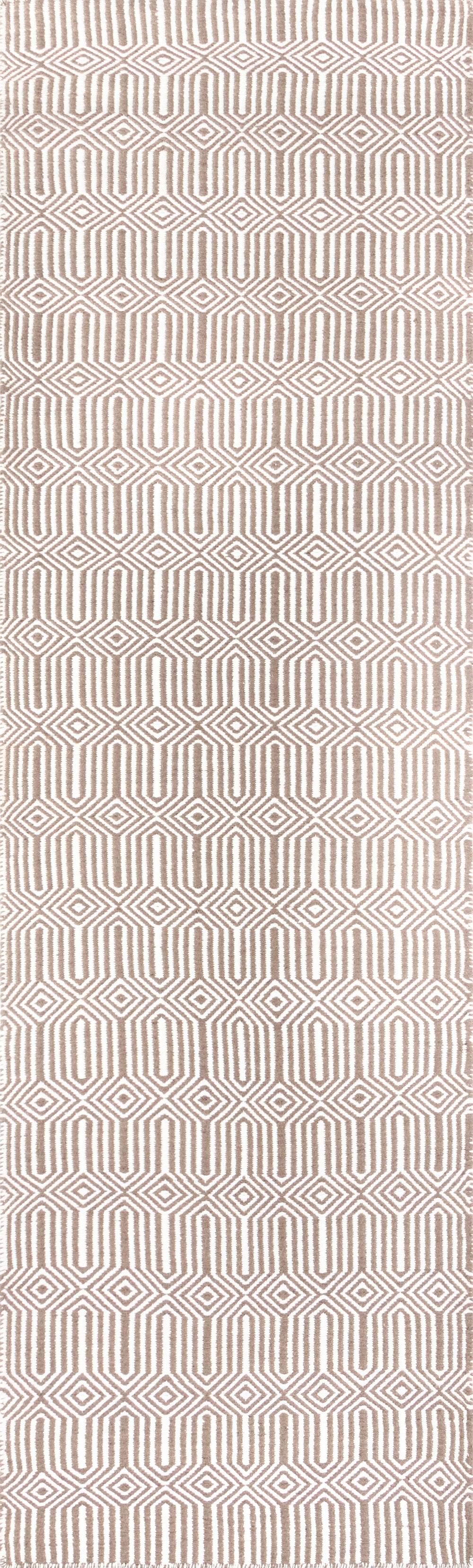 The retro allure of this all-weather area rug proves that outdoor living never looked so luxe. The graphic allover print is an instant standout among interior and exterior spaces, with concentric beige and white geometric patterns that contrasts organic surroundings with modern symmetry. Innovative PET synthetic fibers protect the hand-woven fibers of the decorative floorcovering from the elements, providing supreme resistance to ultraviolet rays, moisture and mildew.