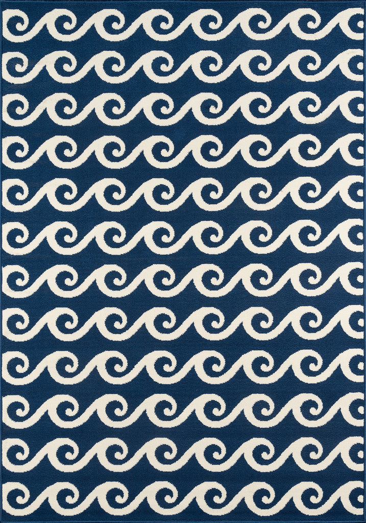 This elegant indoor/outdoor all-weather area rug offers everything you need to complete the ultimate outdoor room. Repeating stripes, diamonds, trellis and arabesque shapes meet nautical icons like ropes, anchors and waves, adding a luxe layer to all interior and exterior living spaces, including patios, porches and pool decks. Durable power-loomed construction ensures each decorative floorcovering transitions beautifully from season to season while the vibrant color palette and enduring polypropylene fibers offer endless design possibilities indoors and out.