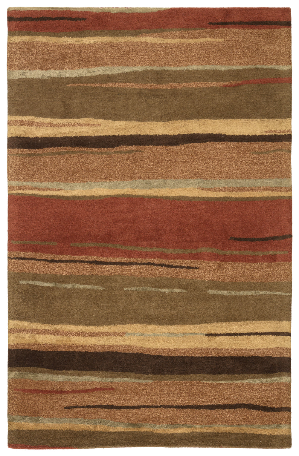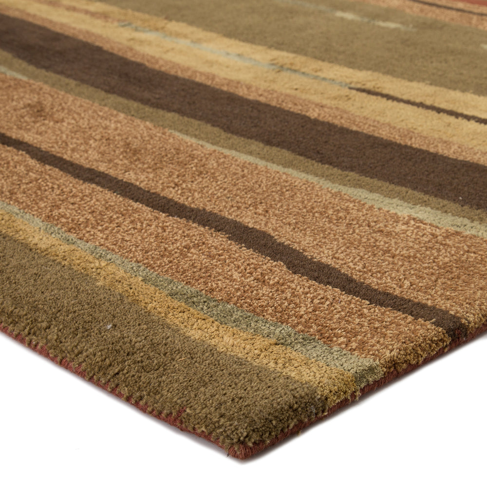 This hand-tufted area rug boasts a sumptuous blend of wool and viscose, offering hints of lustrous detail and a plush feel to on-trend homes. A modern pattern of variegated lines showcases rich tones of red, dusty blue, gold, rose, and brown for a sophisticated yet earthy colorway.