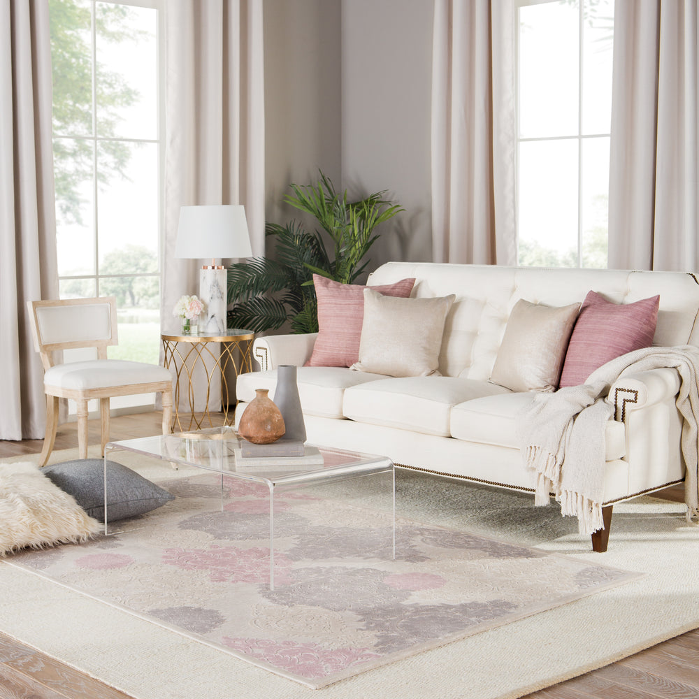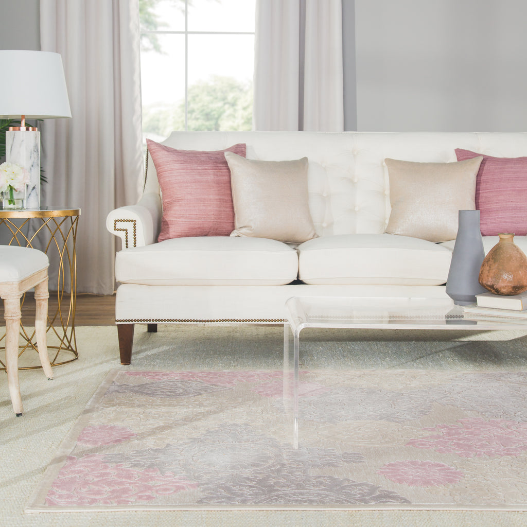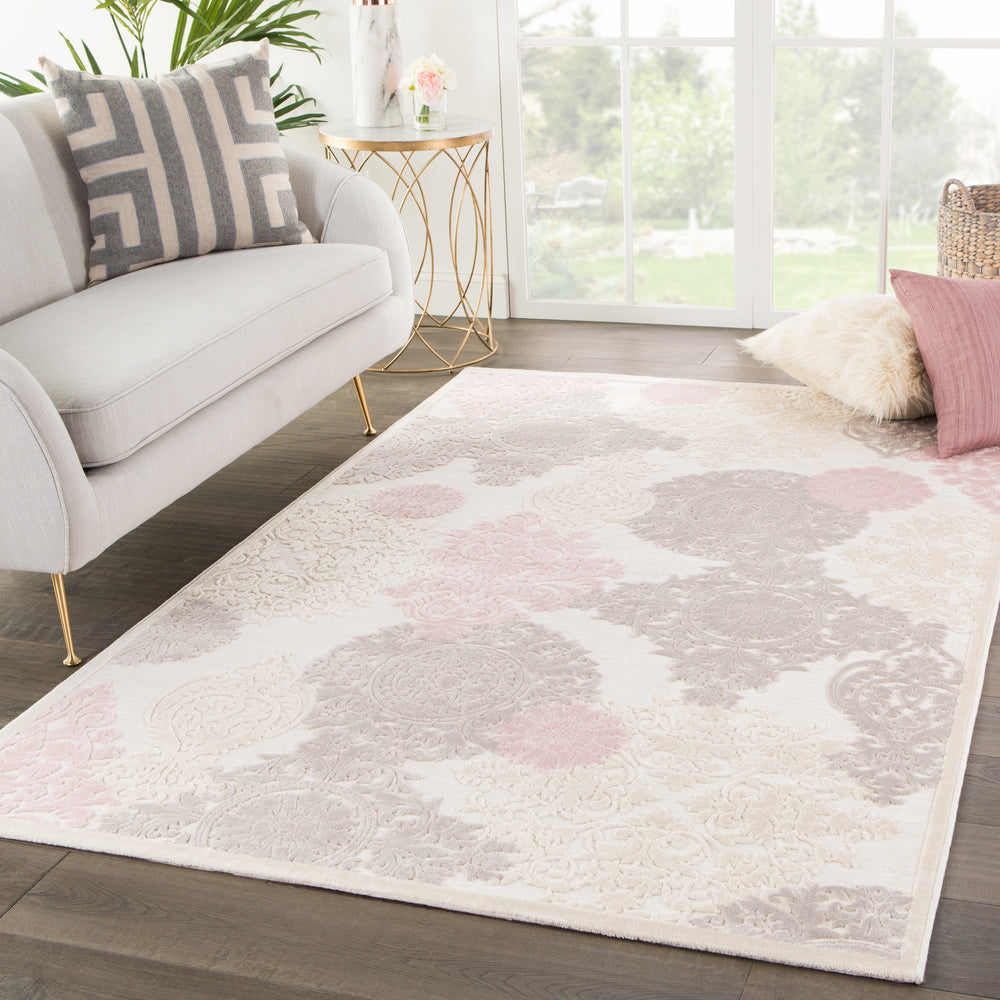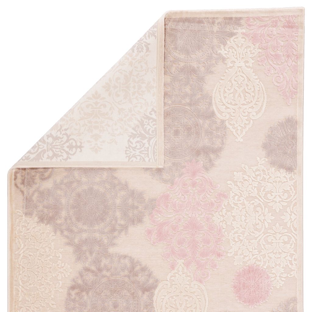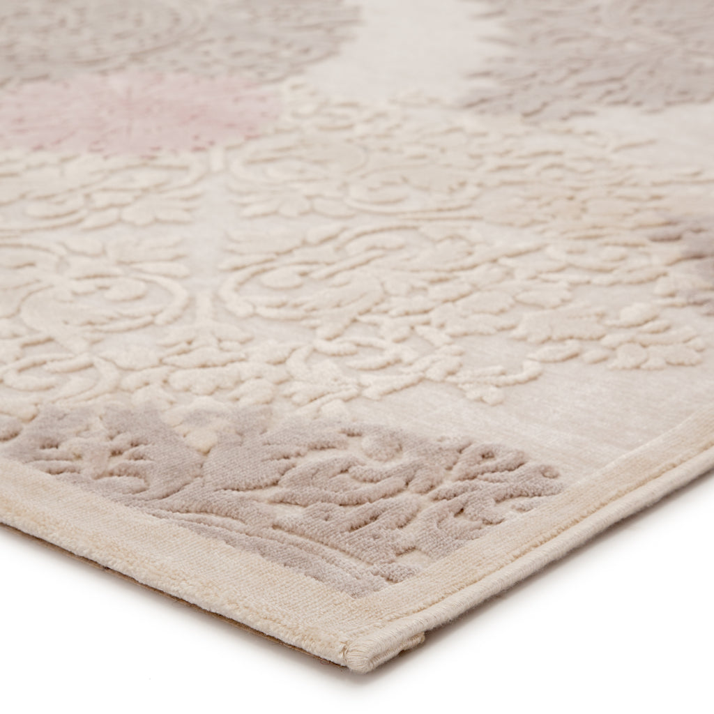 The Fables collection is a curated assortment of contemporary and transitional styles with an invitingly soft touch, rich high-low texture, and a luxurious sheen. The Wistful area rug introduces classic charm to any space with an elegant overlapping damask pattern. Ornate and feminine, this acrylic, rayon, and polyester rug offers a beautiful luster in glamorous tones of ivory, pink, and light gray.