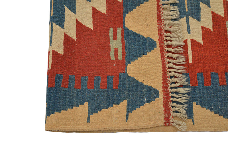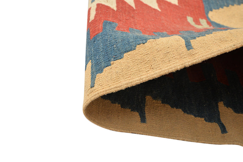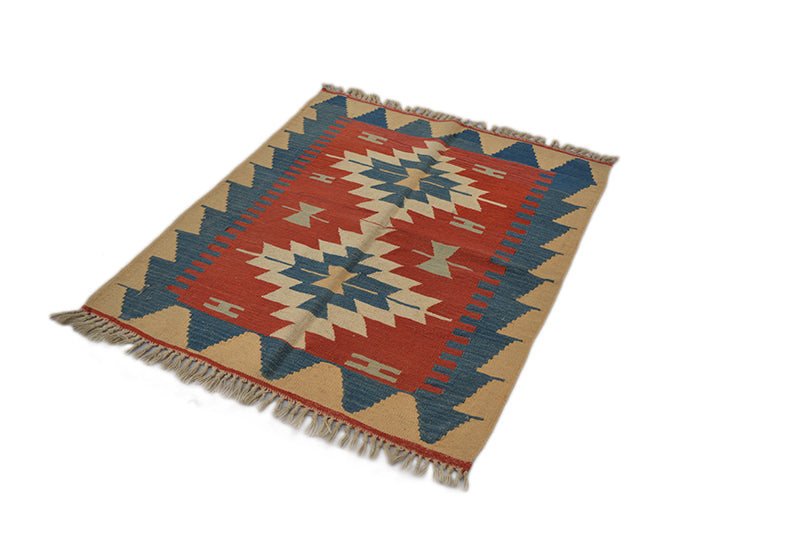 Awe-striking design, brilliant posh shades and flawless entwining of Turkish craftsmanship describe the beauty of this Turkish Kilim! Go ahead decking your lounge area, patio or your living room with this flat-woven accent piece for an incomparable elegance and instant styling to happen. Measuring 2' 9" height and 3' 10" width, you get an accentuated look that hikes up the beauty of your furniture and other decor elements as well. While the matchless medallion motifs in beige, green and red colors liven up your monochromatic room, the medallion motifs strewn all over adds to its exquisiteness. Do not overlook the distressed fading off happening on the borders, which can never go unnoticed!