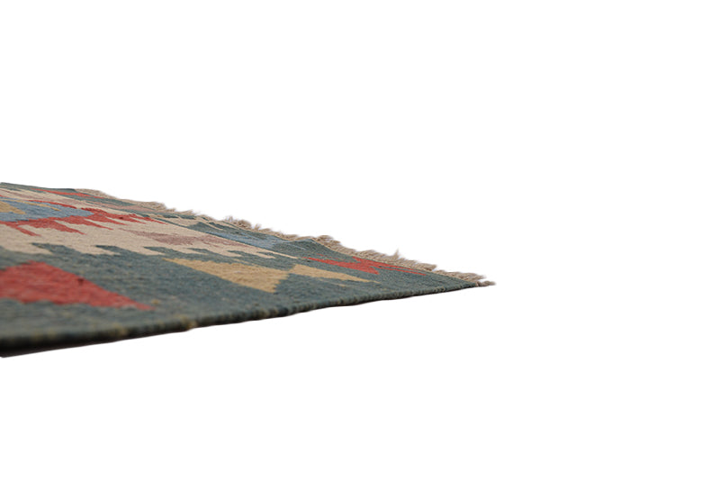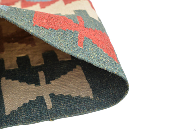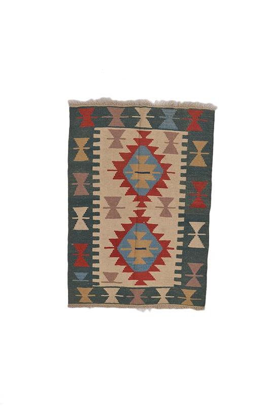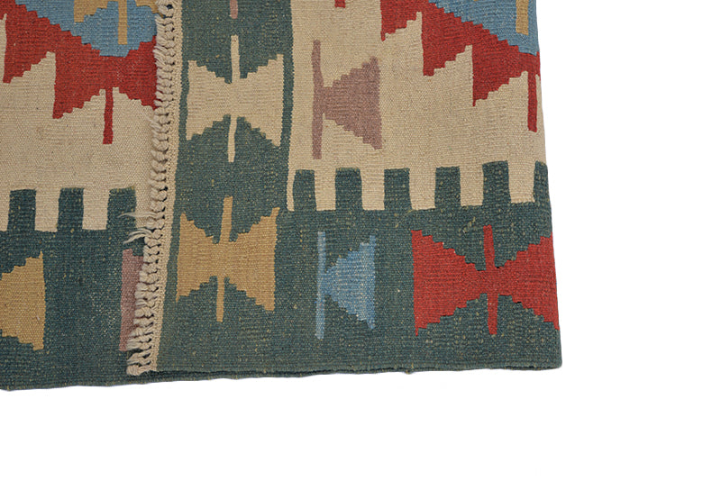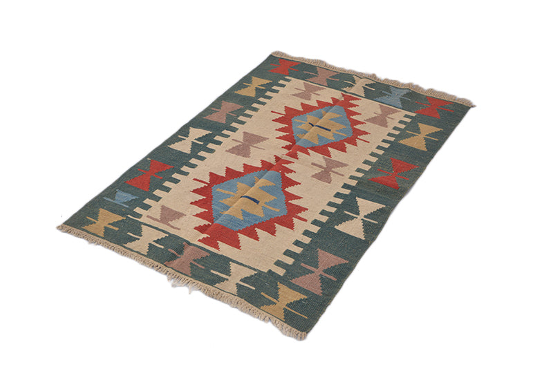 Awe-striking design, brilliant posh shades and flawless entwining of Turkish craftsmanship describe the beauty of this Turkish Kilim! Go ahead decking your lounge area, patio or your living room with this flat-woven accent piece for an incomparable elegance and instant styling to happen. Measuring 2' 9" height and 3' 10" width, you get an accentuated look that hikes up the beauty of your furniture and other decor elements as well. While the matchless medallion motifs in beige, green and red colors liven up your monochromatic room, the medallion motifs strewn all over adds to its exquisiteness. Do not overlook the distressed fading off happening on the borders, which can never go unnoticed!