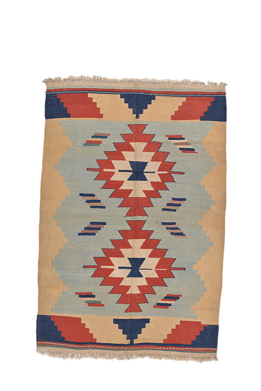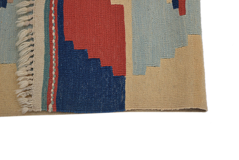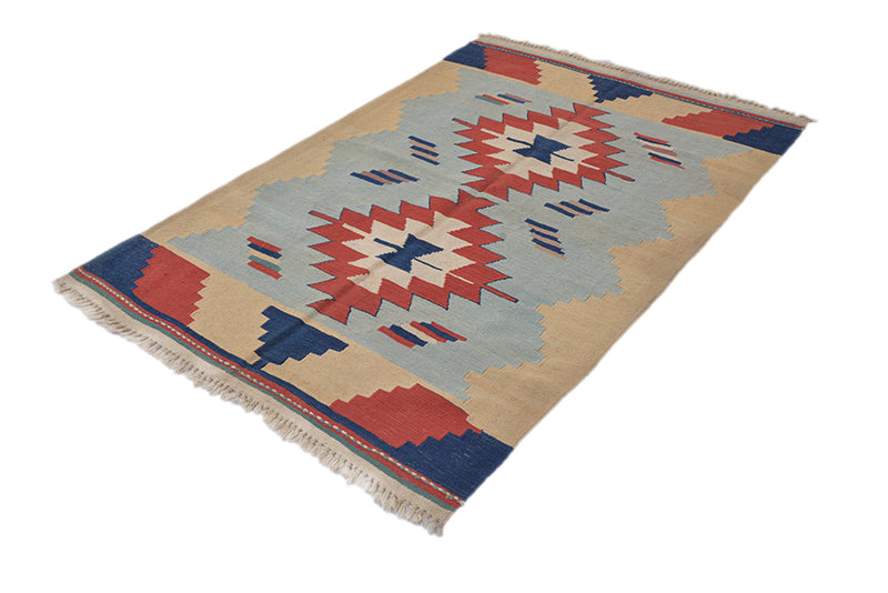 Decorate your home with this sparkling Persian Nahawan rug made out of wool and cotton, which includes a noticeable softness and sheen, and encapsulates central medallion with unique motifs. Nahawan rugs are known for its Persian pattern of nomadic and geometric motifs, with medallion in the middle, measures 4'10"x7'10", with prominent red, blue and black colors which makes the rug all the more unique. Nahawan rugs are most sought after for its durability, high quality of wool on a cotton foundation, dominating colors for richness to differentiate it from all other furnitures and interiors in your home. Without doubt, the distinctive medallion colors and geometric designs used in this Persian tribal rug make it a perfect choice for your living room.