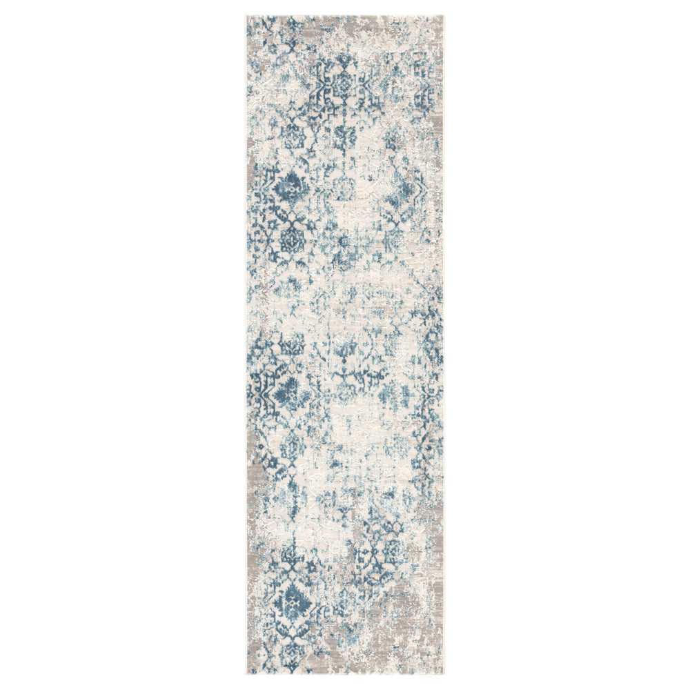 The Cirque collection artistically melds contemporary appeal with the timeless and intricate beauty of antique designs. The Siena area rug boasts a stunningly abrashed brocade pattern in stunning blue, ivory, and gray tones. The mottled colorway creates a modern distressed look on this power-loomed viscose and polyester accent, soft with textured high-low pile.