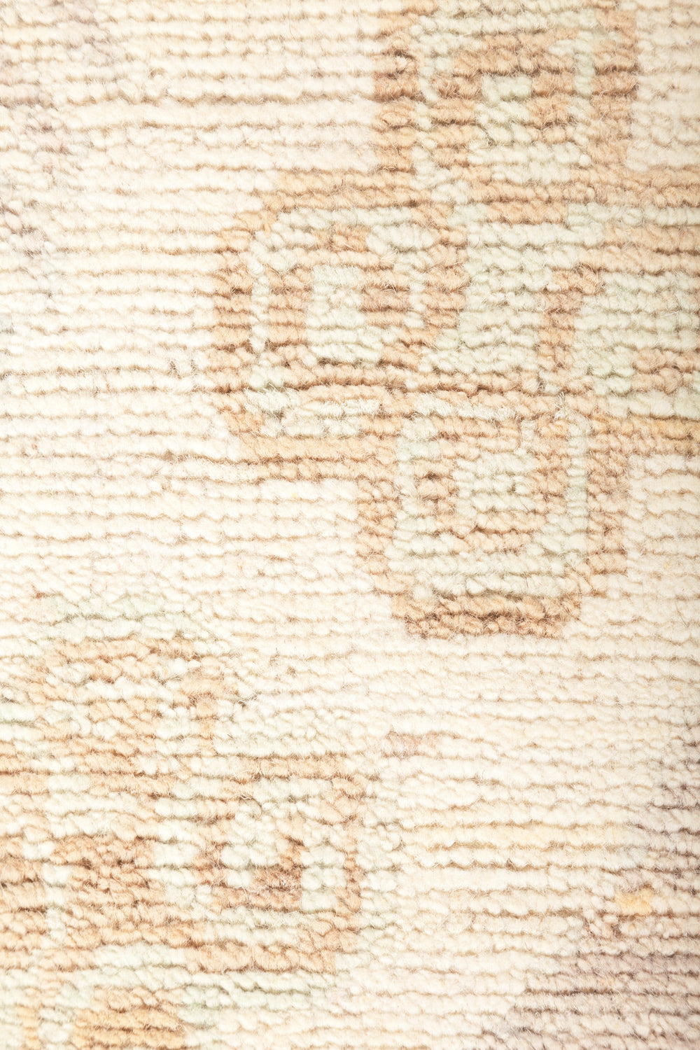 These rugs develop the decorative schemes of late 19th century Turkish carpets. These rugs have large simplified patterns in light tonalities featuring ivory, pale blue, rust, salmon and light green. The origin of these patterns derive from Persia, but the rendition is strictly more modern and decorative. These carpets can be found in various color ways and in an almost infinite range of patterns suitable for every home.
