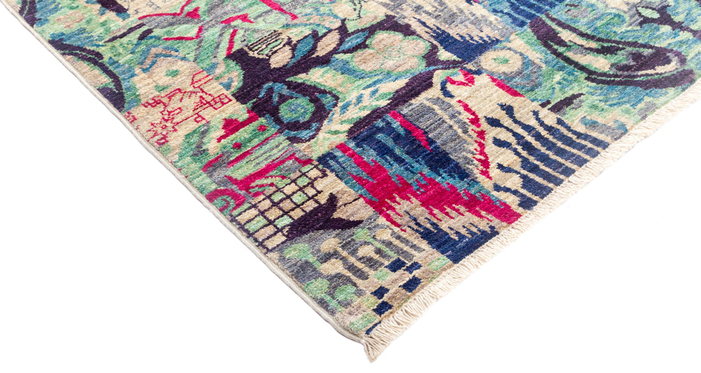 Suzani, Hand Knotted Area Rug - 4' 4" x 5' 10"