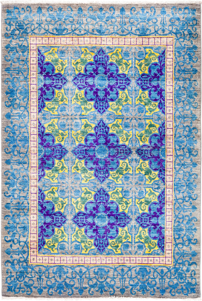 Suzani, Hand Knotted Area Rug - 5' 4" x 6' 10"