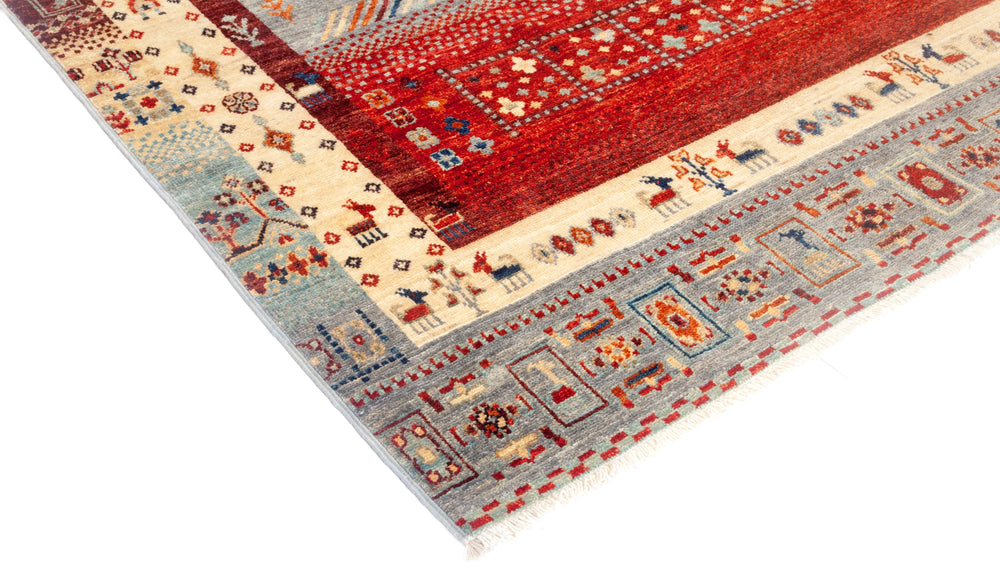 These area rugs resemble traditional Persian style tribal village designs. These rugs are bold, striking and colorful. South Persian tribal pieces, true Ziegler Sultanabads, and almost any non-urban Iranian weaving has been interpreted and creatively adapted. These carpets are directly appealing and therefore work well in any context, overall style or period.