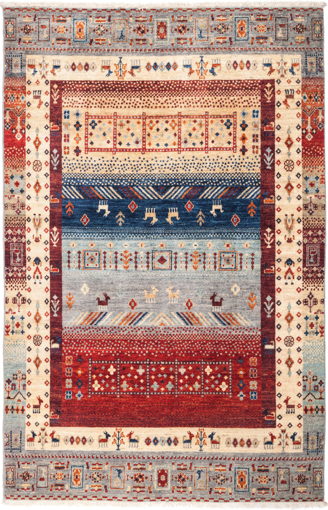 Tribal, Hand Knotted Area Rug - 4' 2" x 6' 1"
