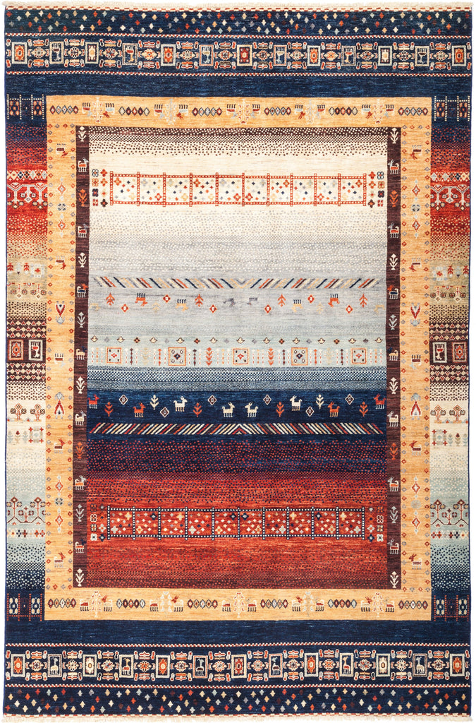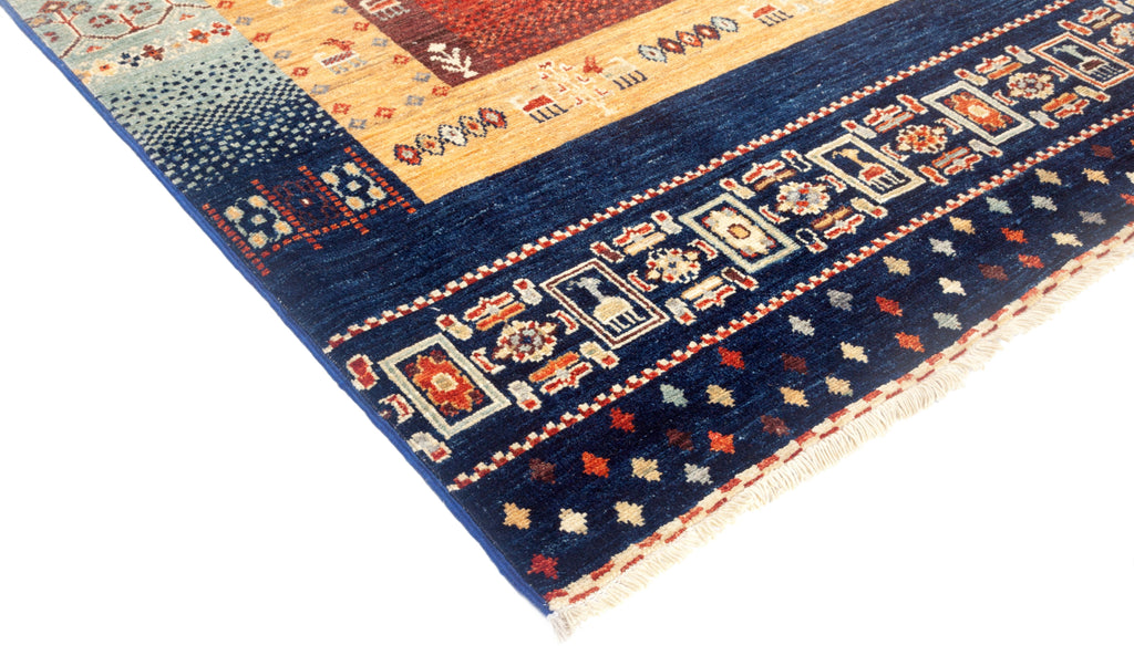 These area rugs resemble traditional Persian style tribal village designs. These rugs are bold, striking and colorful. South Persian tribal pieces, true Ziegler Sultanabads, and almost any non-urban Iranian weaving has been interpreted and creatively adapted. These carpets are directly appealing and therefore work well in any context, overall style or period.