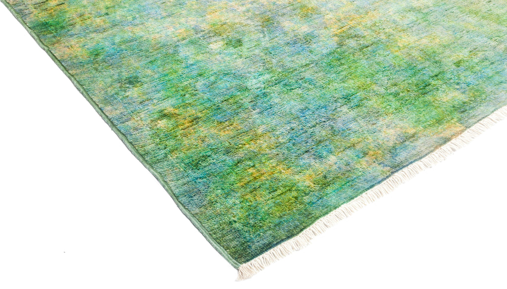 These area rugs are over dyed, which may have been originally in Moroccan, Ikat or Oushak patterns. The color schemes range from bright blue to orange to ruby red, rose, bronze, gold as well as pale shades of pastel. Solo Rugs Vibrance Collection rugs make a bold chromatic statement in virtually any context and are perfect for any interior design project.