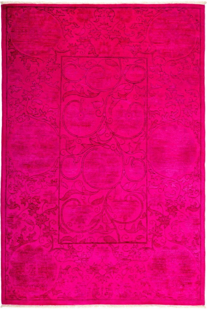 These area rugs are over dyed, which may have been originally in Moroccan, Ikat or Oushak patterns. The color schemes range from bright blue to orange to ruby red, rose, bronze, gold as well as pale shades of pastel. Solo Rugs Vibrance Collection rugs make a bold chromatic statement in virtually any context and are perfect for any interior design project.