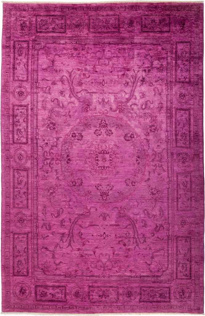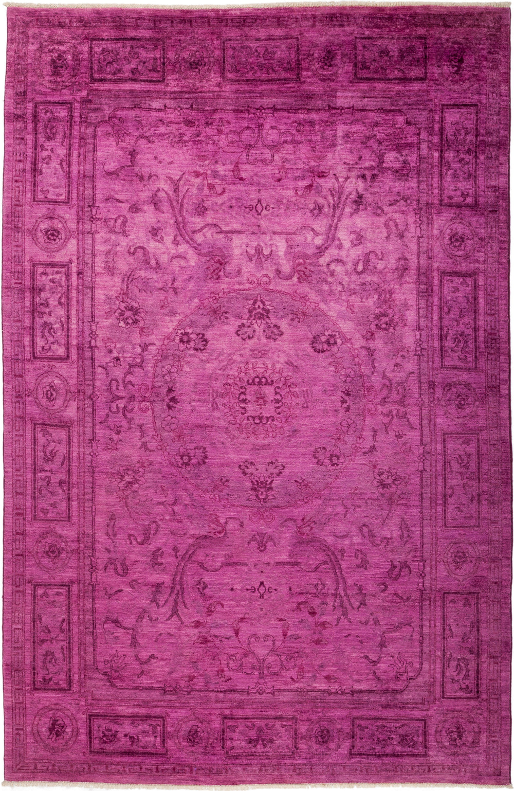 These area rugs are over dyed, which may have been originally in Moroccan, Ikat or Oushak patterns. The color schemes range from bright blue to orange to ruby red, rose, bronze, gold as well as pale shades of pastel. Solo Rugs Vibrance Collection rugs make a bold chromatic statement in virtually any context and are perfect for any interior design project.