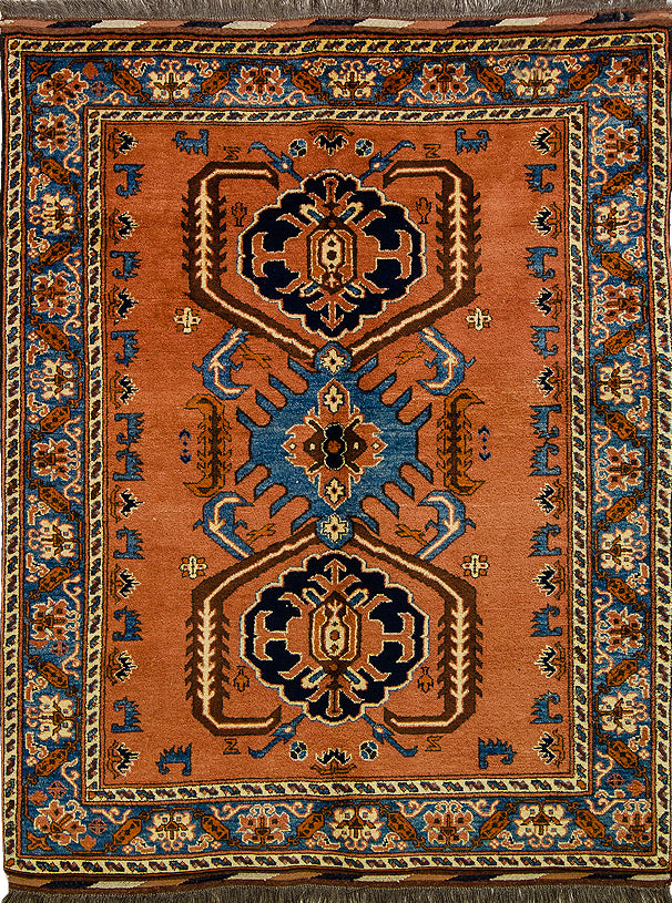 Vintage Persian Rug Tribal Rug, Brown Light Blue, 4' x 6'