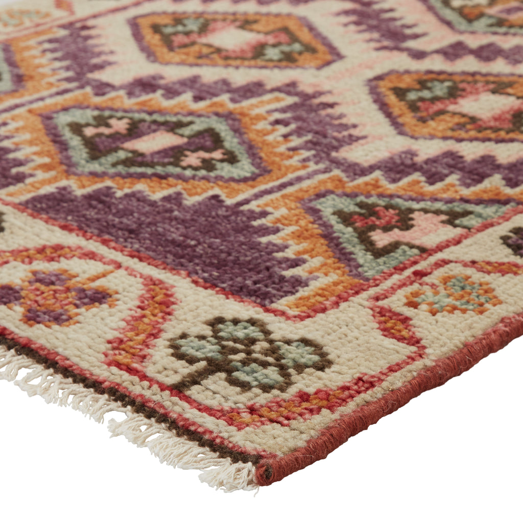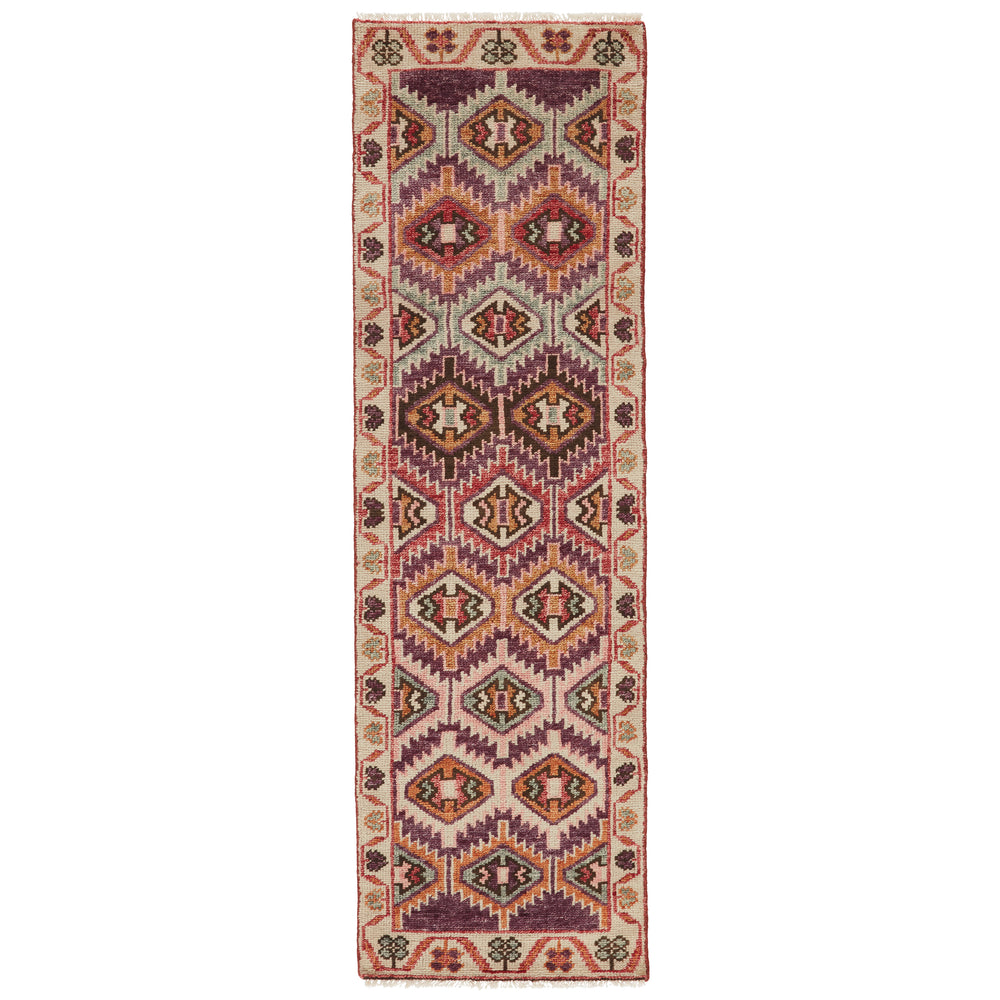 Inspired by traditional Turkish designs, the Coredora collection boasts vibrant hues and a stunning hand-knotted quality. The Nemi rug showcases a contemporary tribal motif in fresh, lively tones of pink, purple, aqua, cream, and yellow. Crafted of soft yet durable wool, this runner is comfortable underfoot and perfect for hallways or bedside spaces.Care Instructions