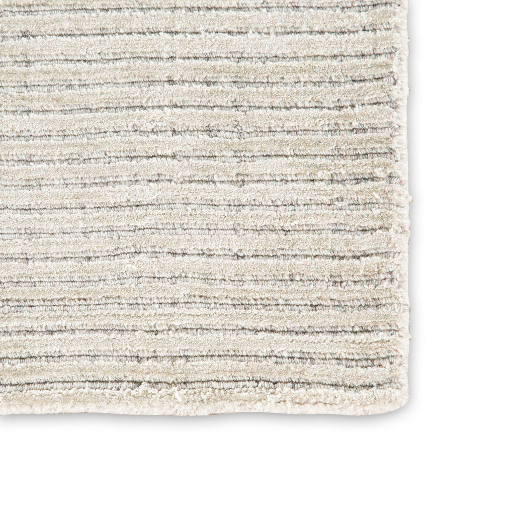 Sophisticated and handsomely modern, the Basis collection takes an elemental accent to a sleek new level. The ivory and dappled gray colorway of this hand-loomed double back rug makes for a versatile foundation in bedrooms and living spaces. Crafted of durable wool and soft, lustrous viscose, the cut and looped pile creates a subtle stripe design rich with texture.