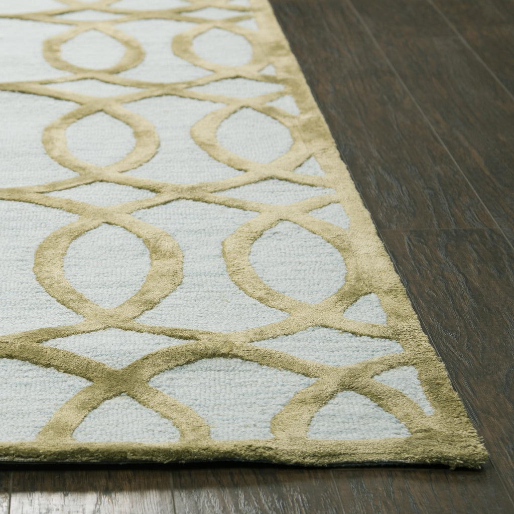 Great design, stunning color and skilled craftsmanship all come together at once to create these masterpieces. Skilled artisan’s painstaking tuft looped color fields of soft, solid colored wool and overlay a crisp, Geometric pattern in shimmering Viscose. To add to the drama, the design accents are hand sheared at a slightly taller height creating 3-D effects that makes the designs literally jump out!