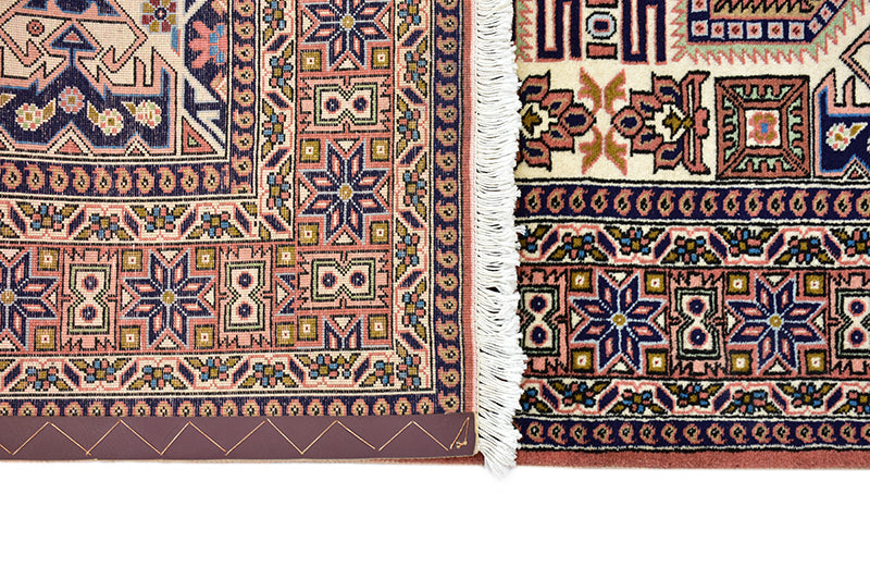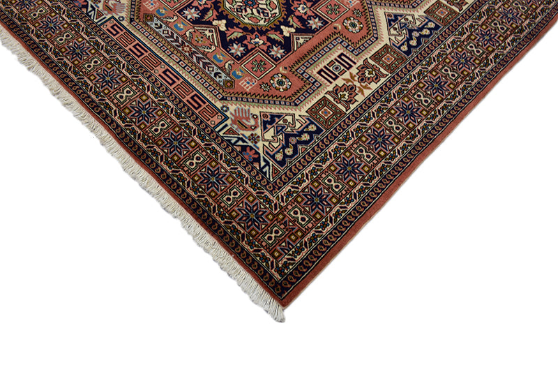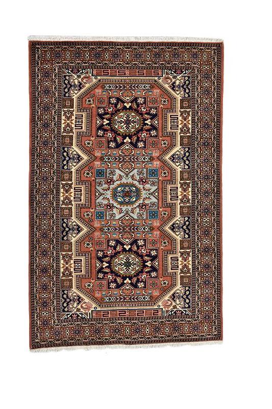 Give a fresh boom of style for your interiors by just placing this wonderfully made Persian tribal themed rug, which comes woven using pure class wool and silk, ensuring perfect value for your money. This rug narrates stories of Persian craftsmanship and workmanship. In addition to this it provides merry cheer and comfort to your home. Measuring 5' 5" x 8' 7", this rug is just the perfect pick to fill any tiny floor spaces, that needs additional decor ideas. Sold at a reasonable cost along with innovative patterns, it is a sweet reminder to grab this lovely piece as soon as possible.
