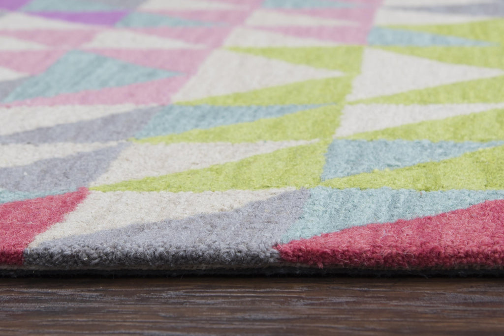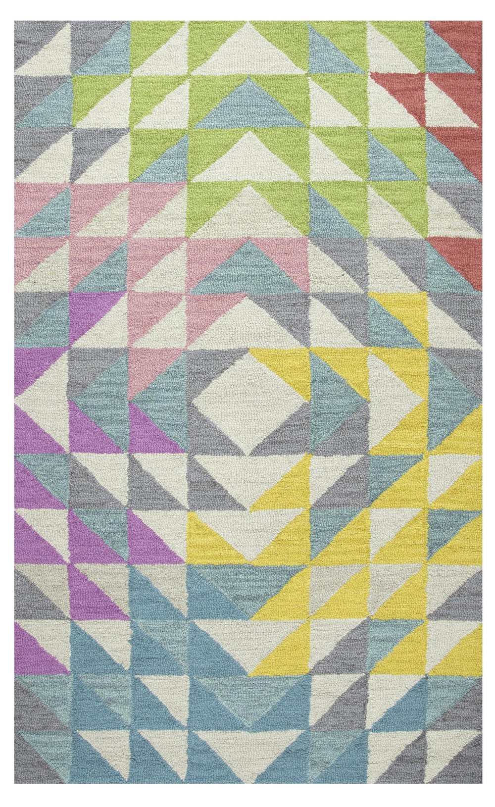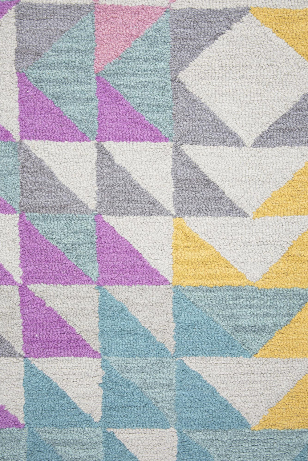 Colorful and creative, the playful arrangement of these Multi colored, pastel triangles will add instant FUN to any space! Hand tufted by the skilled weavers in India, each piece is created with 100% Wool and great attention to detail.