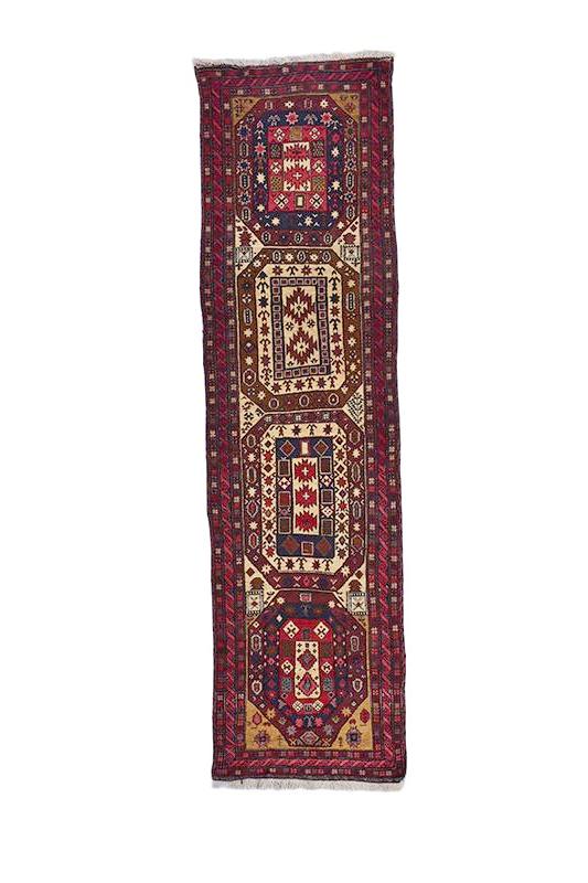 Make a remarkable impact in your area with this stunning accent piece, the Baluchi runner! This gives a big turn-on of traditional style into your home with its high-quality artisan weaving techniques and repetitive geometric designs. This runner will become your functional piece with its brilliant tone of brown, cream, red and the typical tribal pattern that it is built on! It comes highlighted with symmetrical patterns of repeated oval or diamond-shaped motifs. They are traditionally designed with an exclusive double pile, giving you an extremely lush feel when you stroll around. Simply place it on your sitting area to add glamour to it or under the bench of the piano, or in the middle of two chairs for a dramatic look.