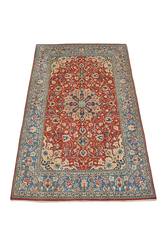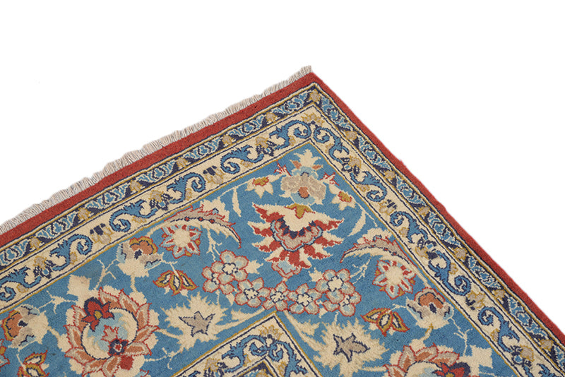 Bring elegance to your home with stunning Isfahan rugs regarded as the finest quality of rug woven from Iran, famed for intricate artwork, excellent quality of wool and Persian knots which makes them exceptional and stunning. Isfahan rugs are characterized by higher knot count, classic patterns including vase, garden and tree of life motifs drawing inspiration from mosques and gardens. Available in dimension, 7' 1" x11' 1", this priceless rug, made of wool and cotton, showcases floral motifs in vibrant hues of red, blue and yellow. The attractive Isfahan rug depicting artistic craftsmanship of Iranian weavers is a must buy to adorn your home décor and sure to seek the admiration of your visitors.