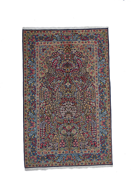 Royal, rich and legendary in appearance for its wide range of designs, a broad palette, great strength and expert color combinations, Kirman rugs portray the traditional classification of notable Persian rugs. Kirman features memorable theme along with vibrant colors, repetitive motifs, surprising variety in the designs to make it unique among all other rugs in the region. Made of high quality wool, measures 5’1x7’11’ with prominent blue and red colors besides repetitive motifs in a combination of range of symbols to make it most wanted to all. Indeed, a most preferred rug for its distinctive and majestic patterns to add the royal look to your living room in addition to inspired designs in the middle to enhance the richness of your home.