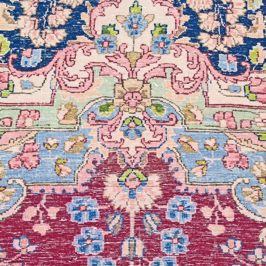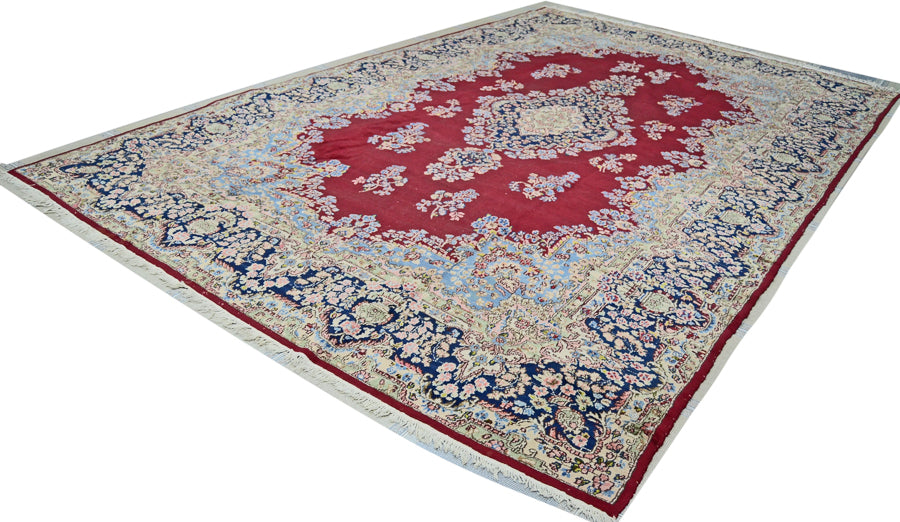 Vintage Persian Kerman Rug, Red Deep Blue Rug, 10' x 15'