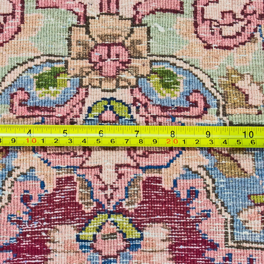 This Kirman style Persian rug combines ornate detail with a unique design. The pattern favors a more natural, organic style with its lack of order and borders that makes it feel truly one-of-a-kind. An ornate cream-colored central medallion is bordered by a deep burgundy red. Every time you look at this rug, you will find new beautiful shapes and details to admire. This rug is completely hand-crafted by talented tribal artisans. They used wool to create the thick pile of this rug, so it endures years of heavy-traffic use. It makes a grand statement in any home for years to come.