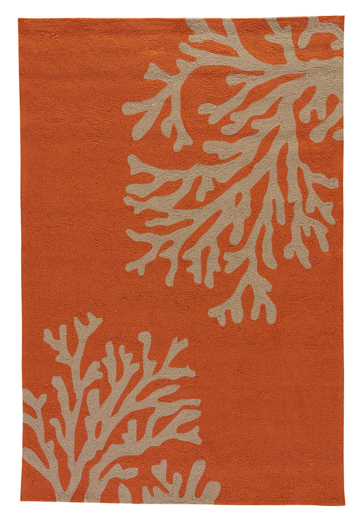 This playful indoor or outdoor area rug showcases a contemporary design and coastal-inspired hues. Neutral taupe branches of coral create a graphic statement on the bold orange backdrop for beach-worthy style, while the looped pile lends unexpected texture to this durable layer.