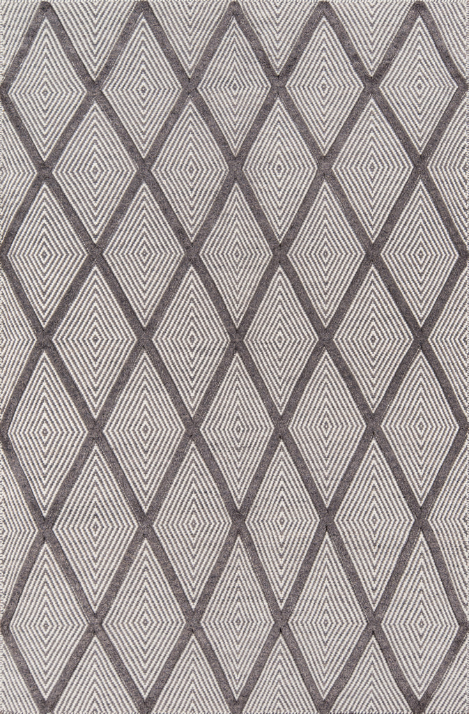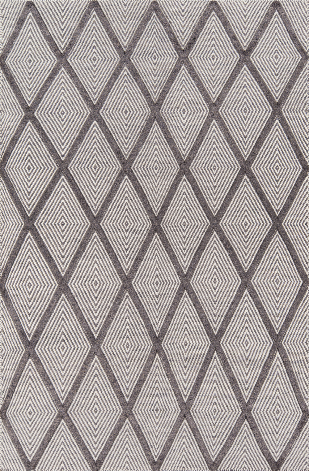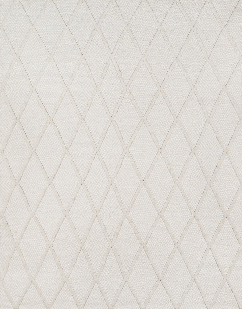 Instill interior floors with a sense of comfortable calm in this decorative area rug that conveys a hip hygge aesthetic. Hand woven from natural wool fibers, optical, diamond and swiss dot patterns fill the geometric field of each carpet in subdued shades of sky blue, baby pink and beige. A pastel color palette and plush fibers make each accent rug the perfect floorcovering for rooms seeking a soft sensibility.
