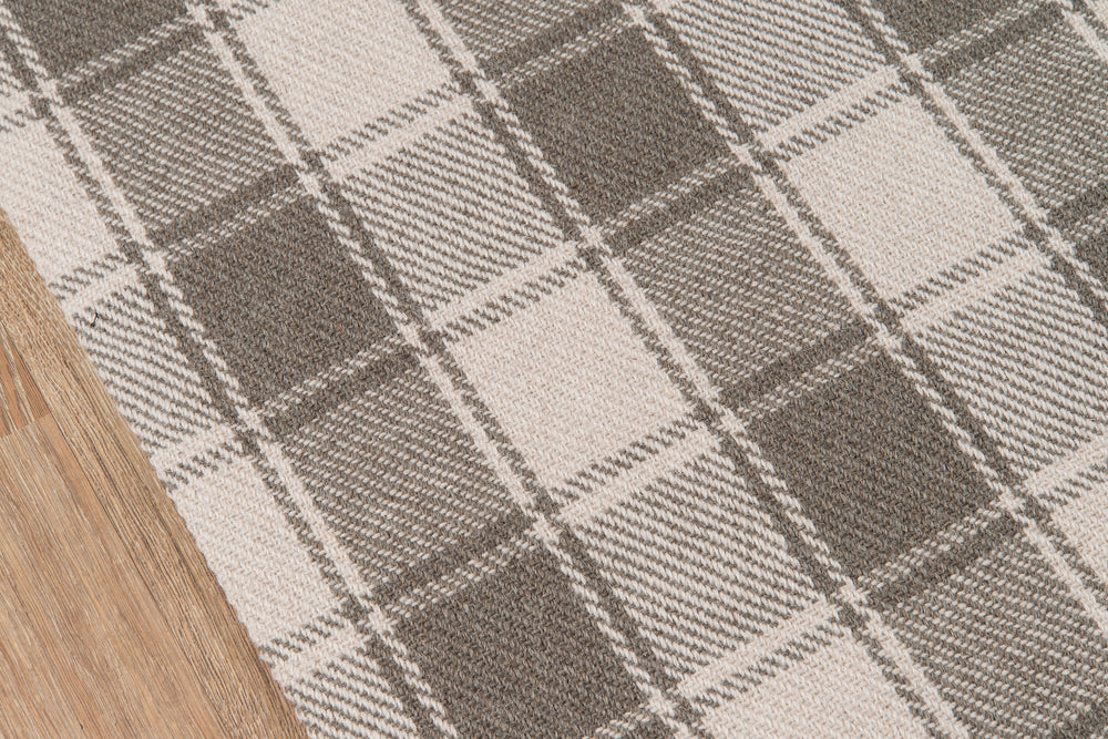 Suited for floors in traditional and modern spaces, this decorative area rug assortment is an interior design staple for well-dressed décor. Tailored textile patterns take on new forms with toned down tartan plaid and windowpane check in sophisticated shades of blue, gray and ivory. Hand woven from 100% natural wool fibers, the uses classical prints and an elegant color palette to create an enduring floorcovering with timeless appeal.