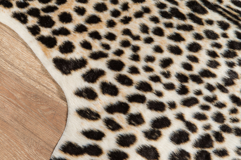 The safari style of this decorative area rug is artfully crafted with humane design in mind. An innovative pairing of acrylic and polyester fibers create the course impression of hair-on-hide, giving each animal print rug the look of leather with a totally touchable texture. Available in zebra, cheetah, and cow print, suede backing adds a supple finish to the underside of this decorative floorcovering, exhibiting exquisite attention to detail that’s cosmopolitan, yet compassionate and cruelty free.