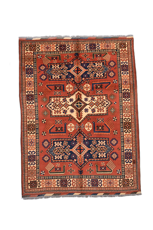 Refurbish your home décor to give a noticeable look with ethnic Kargahi rugs, depicting geometrical patterns in artistic combination of colors from bold red and deep blue to vibrant yellow which makes them outstanding. Traditional Kargahi rugs woven with 100% wool are very durable, available in dimension 6' 10"x12' 5", perfect to be laid near your living room couch or bedroom or dining room, with heavily patterned border in colors of elegant blue and yellow. Known for the unique design and dominating colors crafted with finest weaving techniques of Turkmenians, the Kargahi rugs give a whole new style statement to your interior. This adorable rectangular rug with it classic design will enhance the beauty of your rooms giving a sense of ethnic style to your home and make them noticeable.