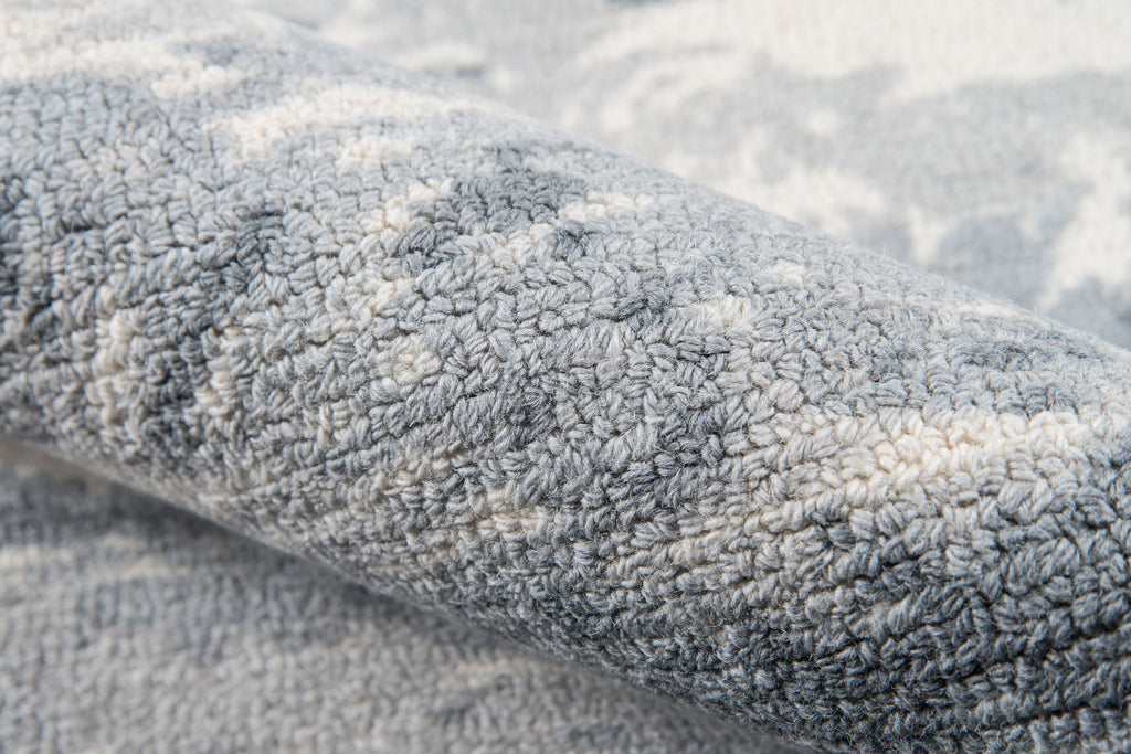 Inspired by the worn appearance of raw concrete, the striated textures of this modern area rug add an industrial element to elegant interior floors. Featuring scattered shadows in mineral-inspired tones, each abstract rug design effortlessly combines cool hues of blue, grey and ivory to create an edgy contemporary aesthetic. Natural 100% wool fibers form a decorative floorcovering assortment that’s ideal for luxurious and laid back lifestyles.