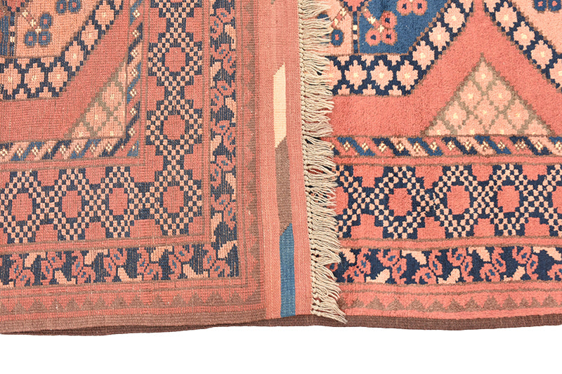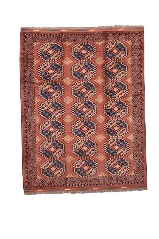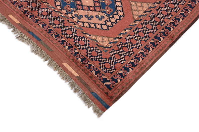 Your home is a place you live and laugh - feed it with the best furnishing possible! Spreading this rug on your bed room or lounge with ethnic imprint depicting hexagonal shaped geometrical patterns in three continous rows in prominent shades of red, blue, orange and beige gives your home an unparalled exquisite finish. This rug is made out of 100% wool, which makes it very durable. Moreover its perfect dimension of 7' 8" x 9' 6" makes it best to fill your living room or bedroom or dining room spaces. The finest weaving techniques of Turkmenians in this Kargahi rugs give it a more noticeable look.