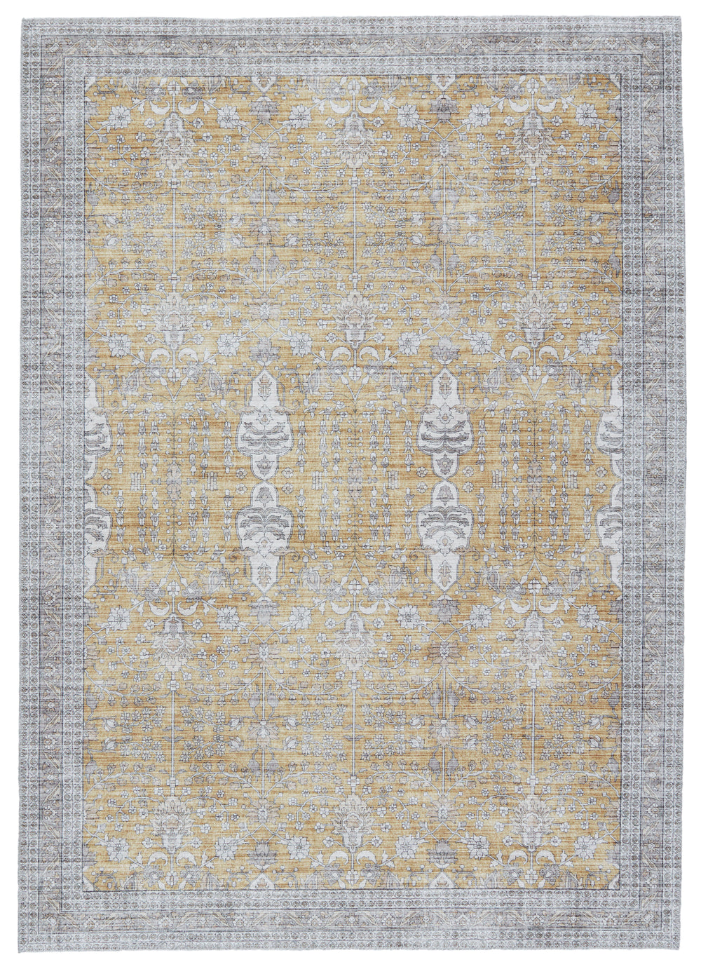 Rich with detail and saturated color, the Kalesi collection makes a statement with updated traditional flair. The Calla rug showcases an intricate pattern in a unique gray and vintage gold colorway. Crafted of durable polyester, the incredibly high-resolution digital printing gives the impression of a hand-knot quality at an accessible price.Care Instructions