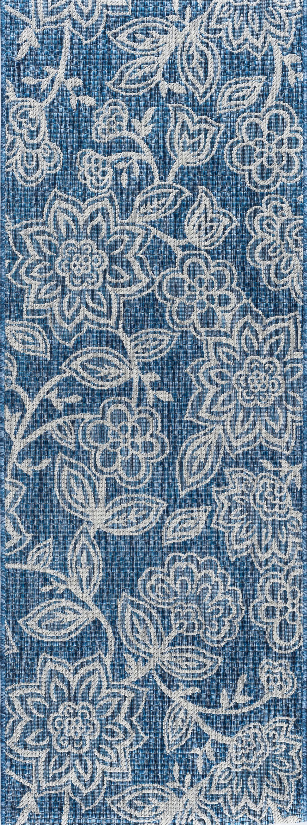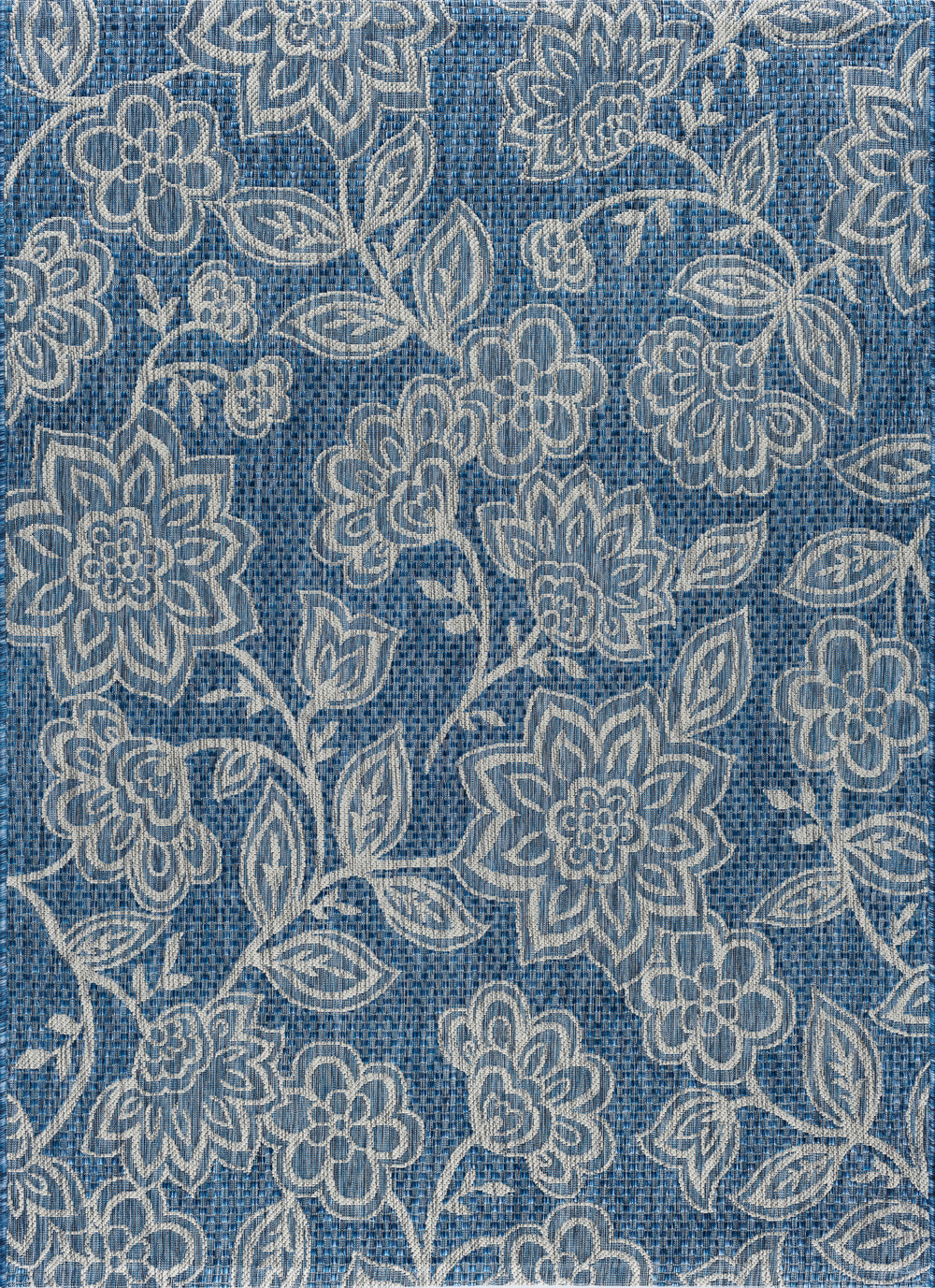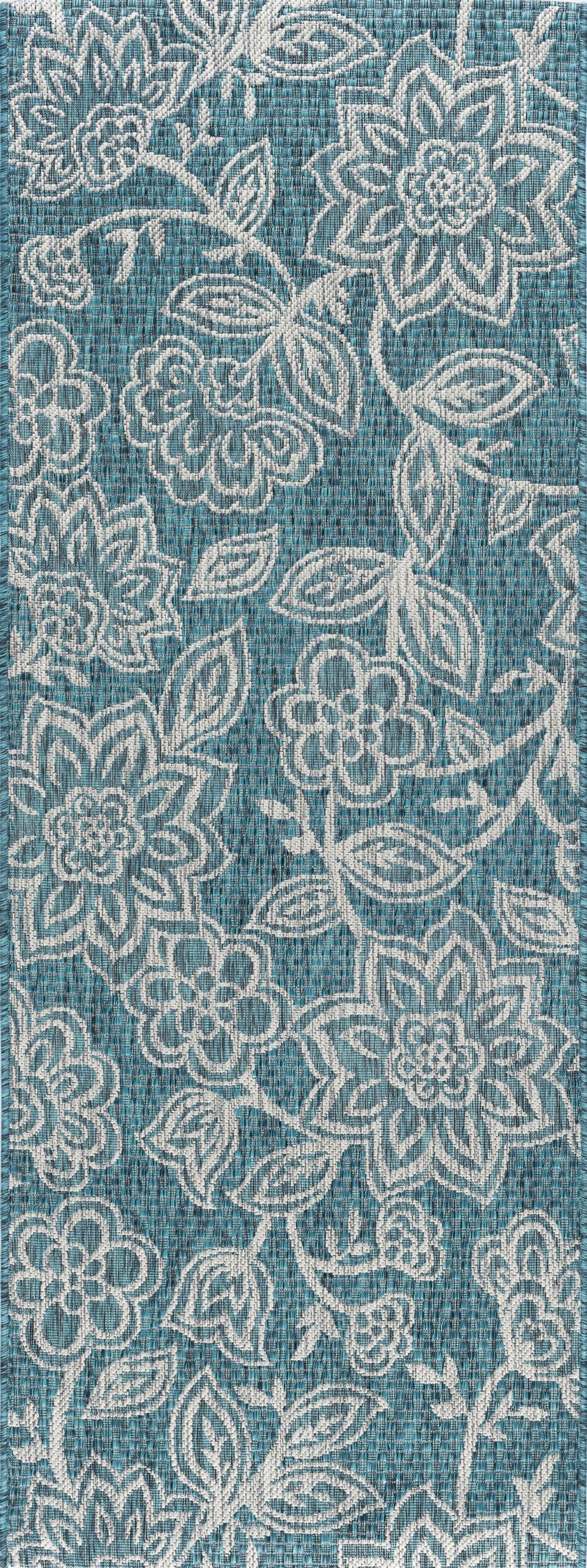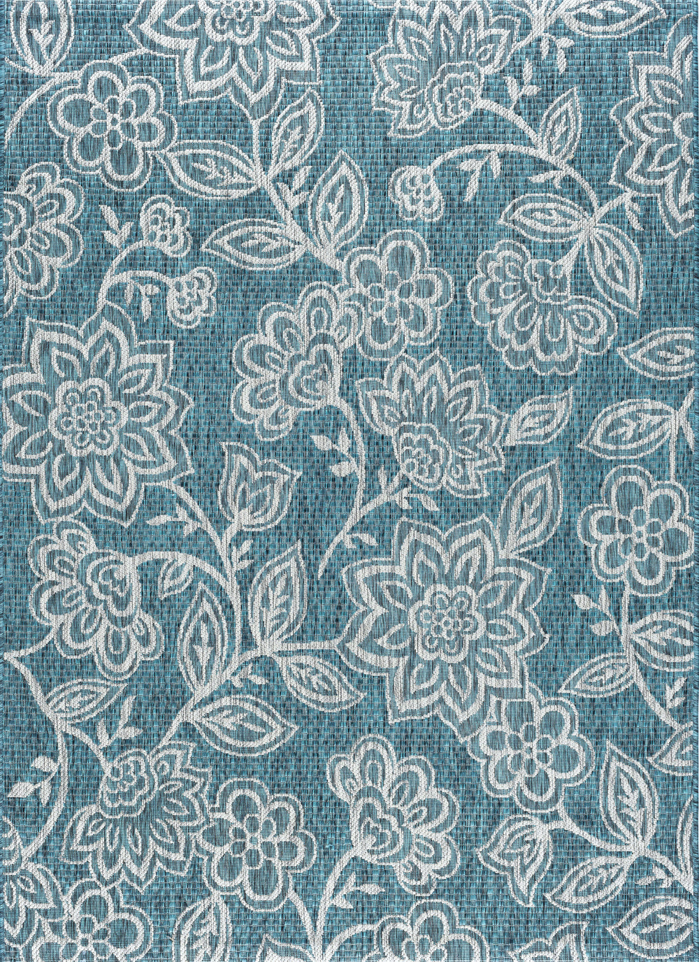 Create a botanical ambiance with this indoor or outdoor floral area rug. The bold, large scale design can be transitional or contemporary. Perfect for an indoor mudroom, entryway, hallway, family room, kids room, basement, or anywhere you are looking for a durable and appealing solution. Machine made, power loomed of 100% polypropylene to stay fresh outdoors on a patio, porch, sunroom, portico, pavilion or deck. Clean with mild detergent and hose with water. Do not bleach.